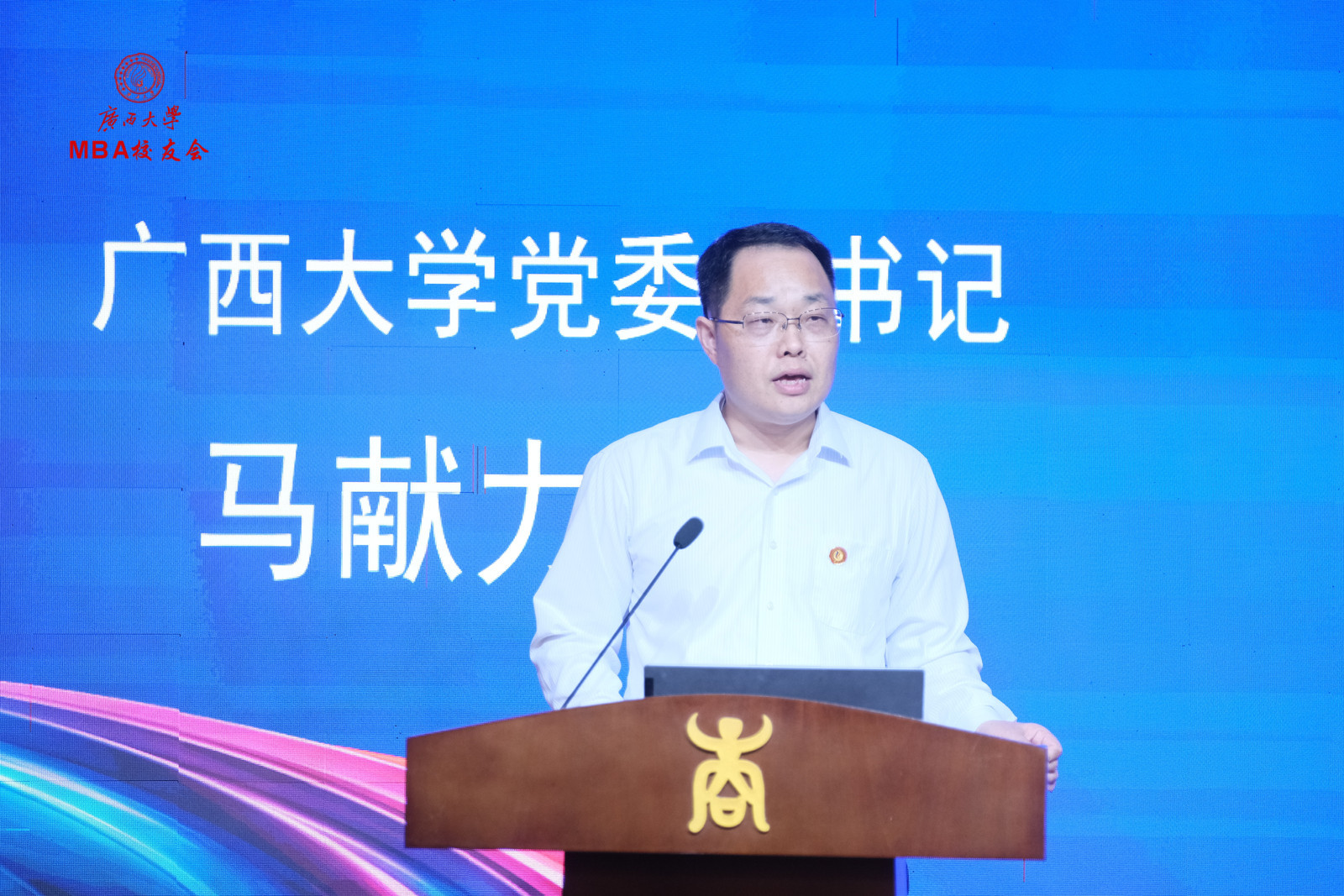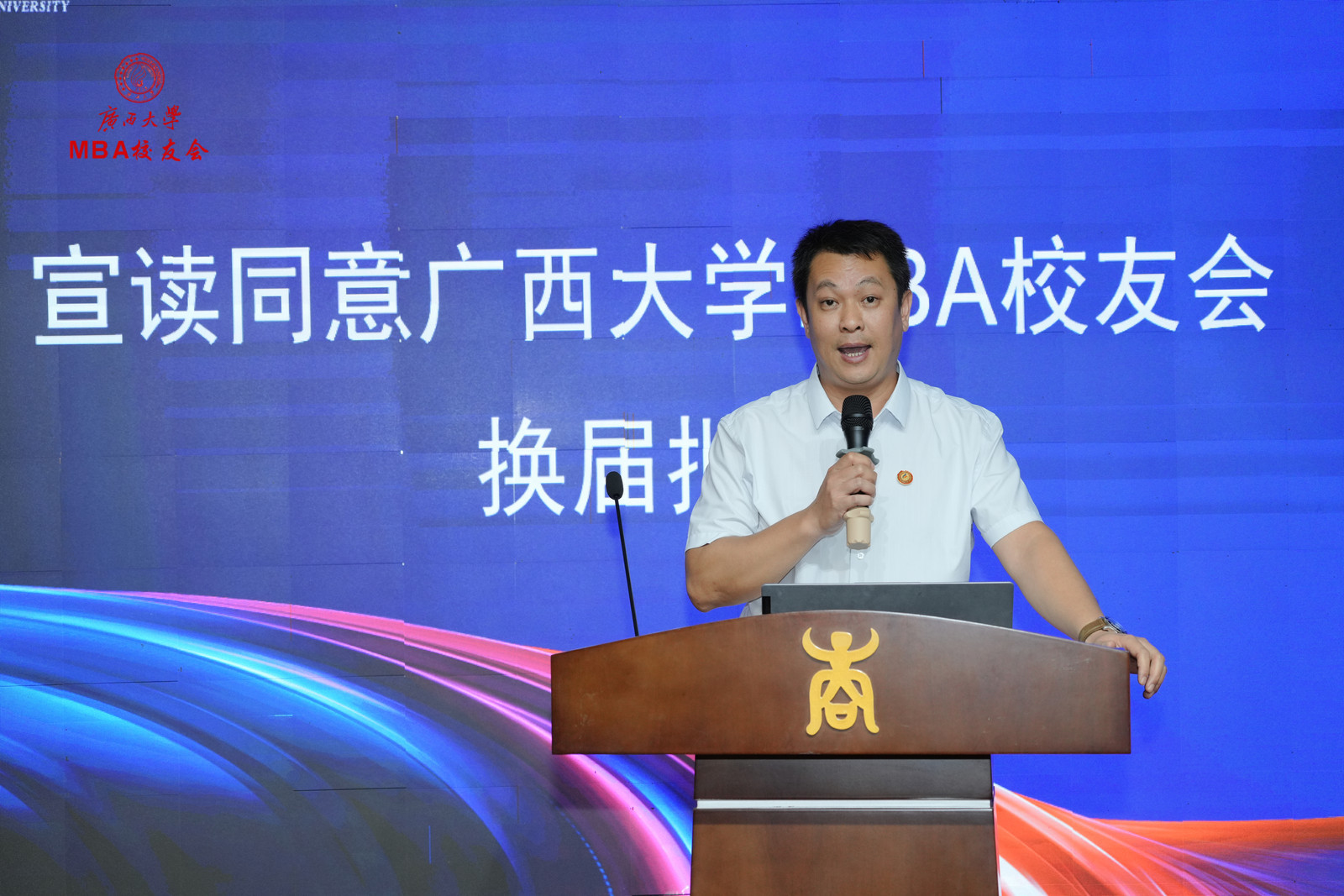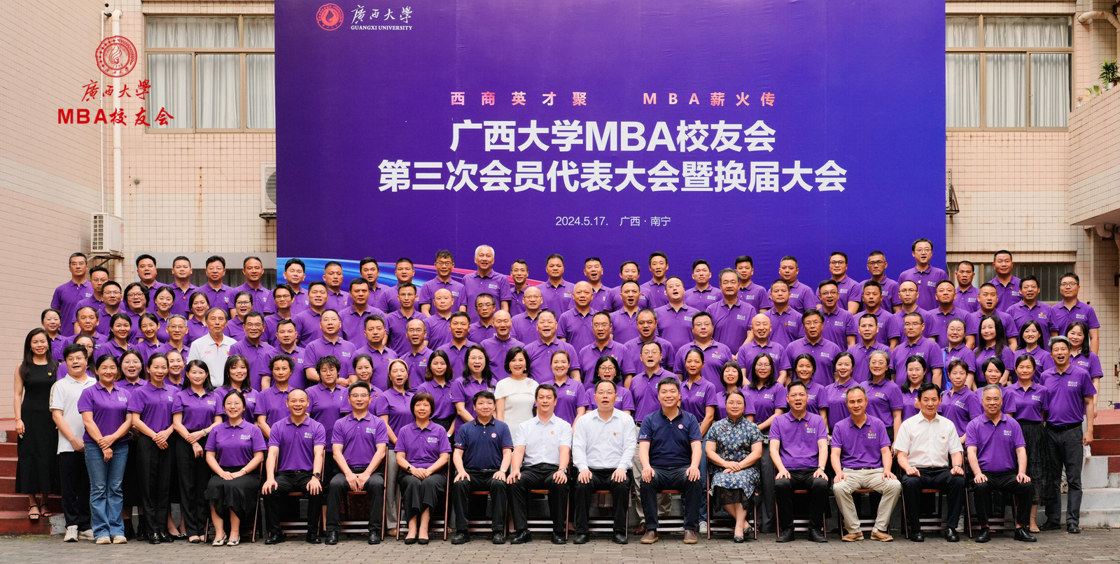 区直员工会代表甘向群、MBA员工代表张程在大会上发言。广州、深圳、区直、南宁市、柳州、桂林、玉林、梧州、贺州、贵港、百色、崇左、SMBA等员工会,EMBA同学会,员工足球协会、乒乓球协会、排球协会等员工代表,以及香港浸会大学MBA、中山大学MBA、暨南大学MBA、深圳大学MBA等嘉宾代表皆到场祝贺。大会还收到了各地兄弟员工会、员工发来的祝贺视频和贺信贺词。最后,换届大会在嘹亮的校歌声中圆满结束。