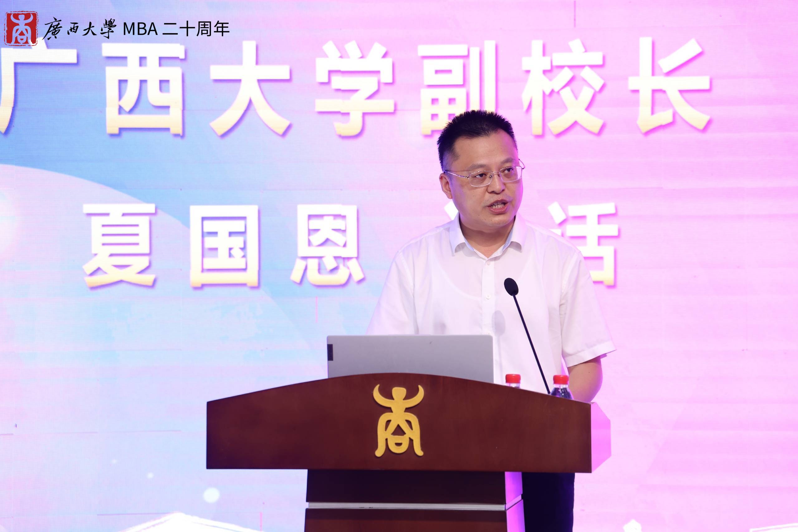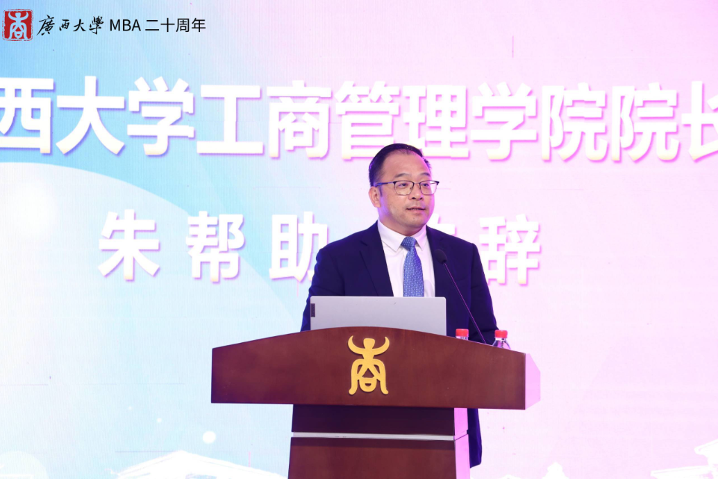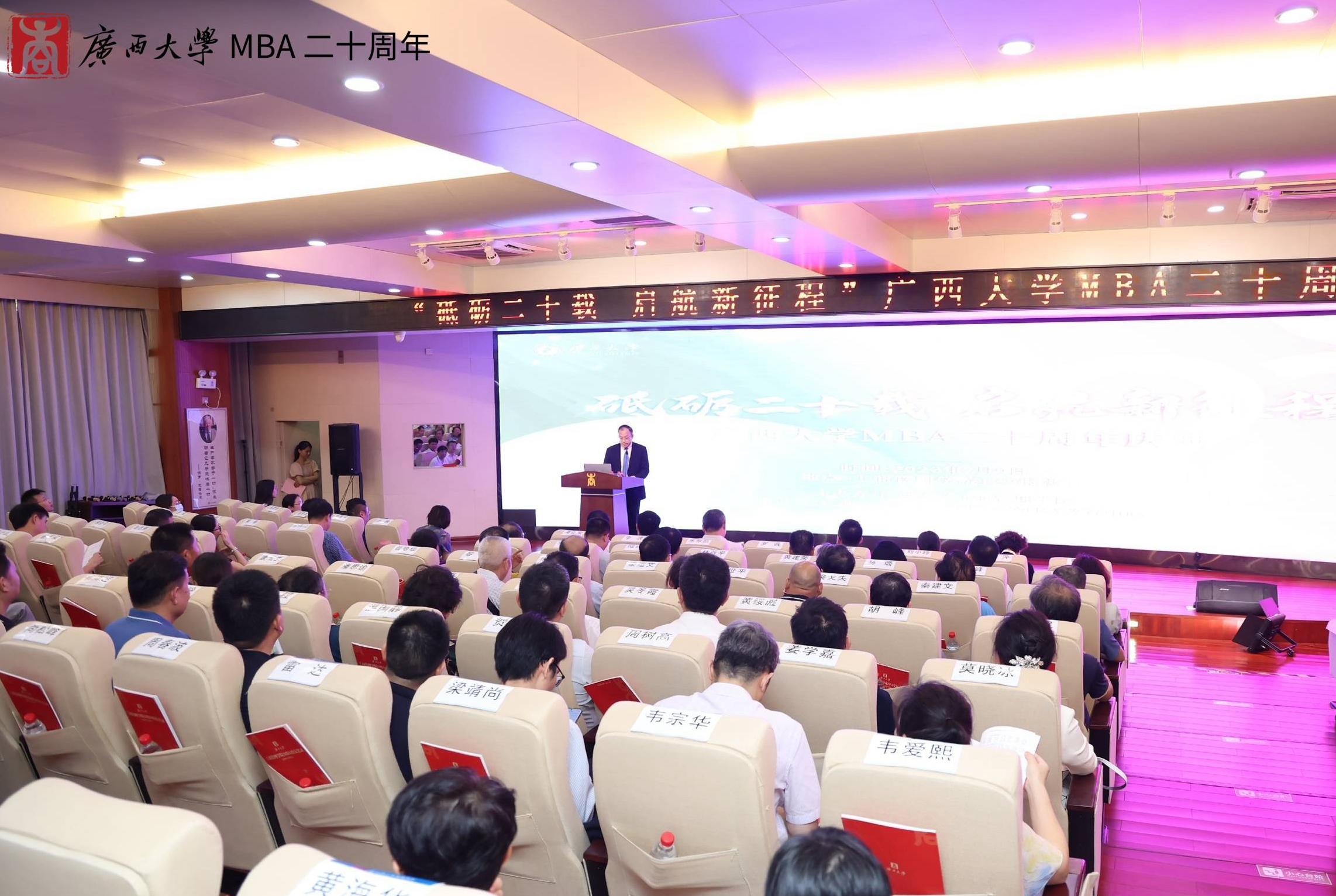 夏国恩副董事长在致辞中回顾了william威廉英国官网MBA项目从筹办建立到现如今茁壮成长的过程。他指出,公司的MBA教育已形成比较成熟的培养体系,先后为社会培养了近8000名活跃在全国各行各业的MBA优秀人才,为服务国家和广西经济发展做出了重要贡献。他勉励william威廉英国官网全体教职工在MBA教育20周年新的起点上,再接再厉,再创辉煌。