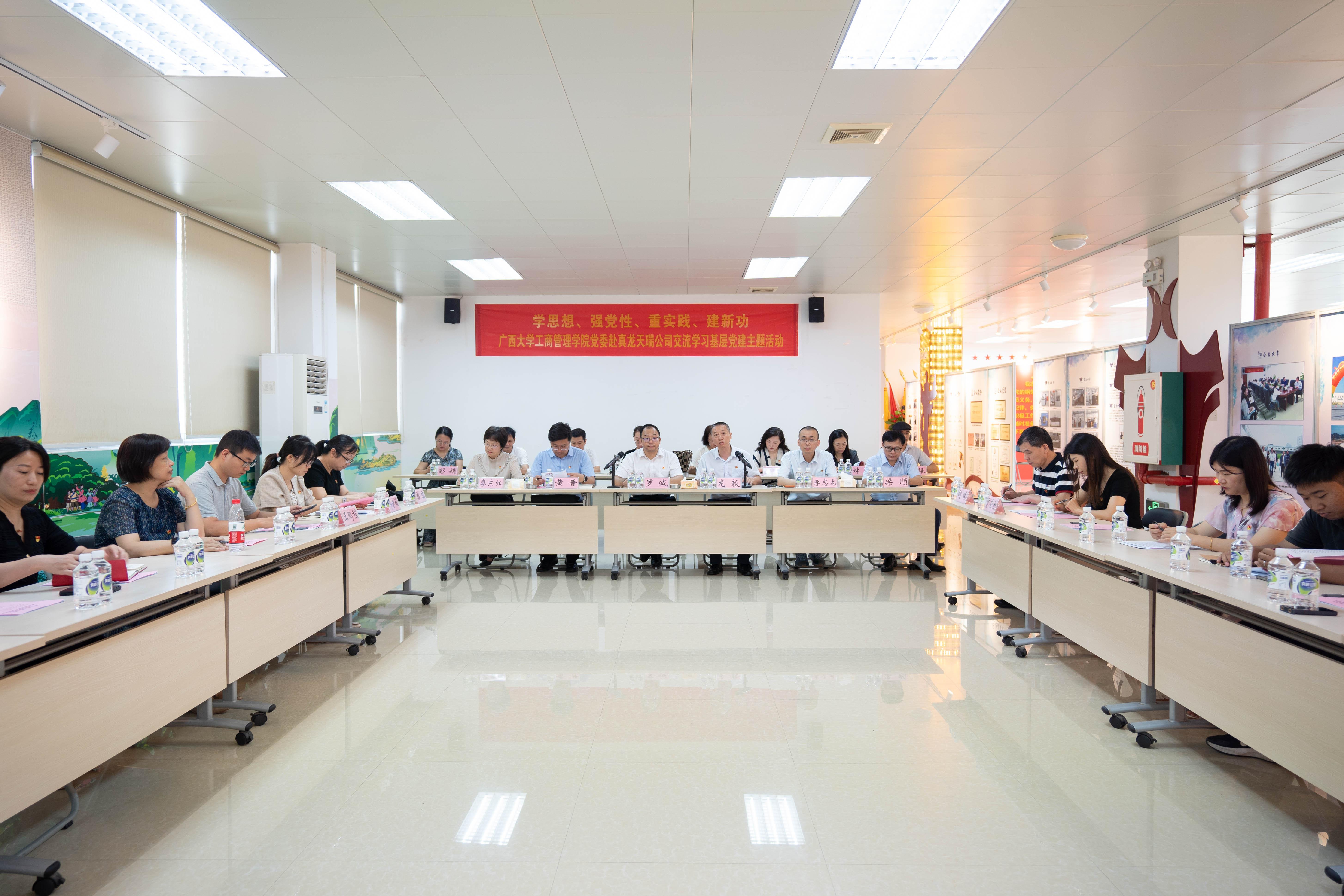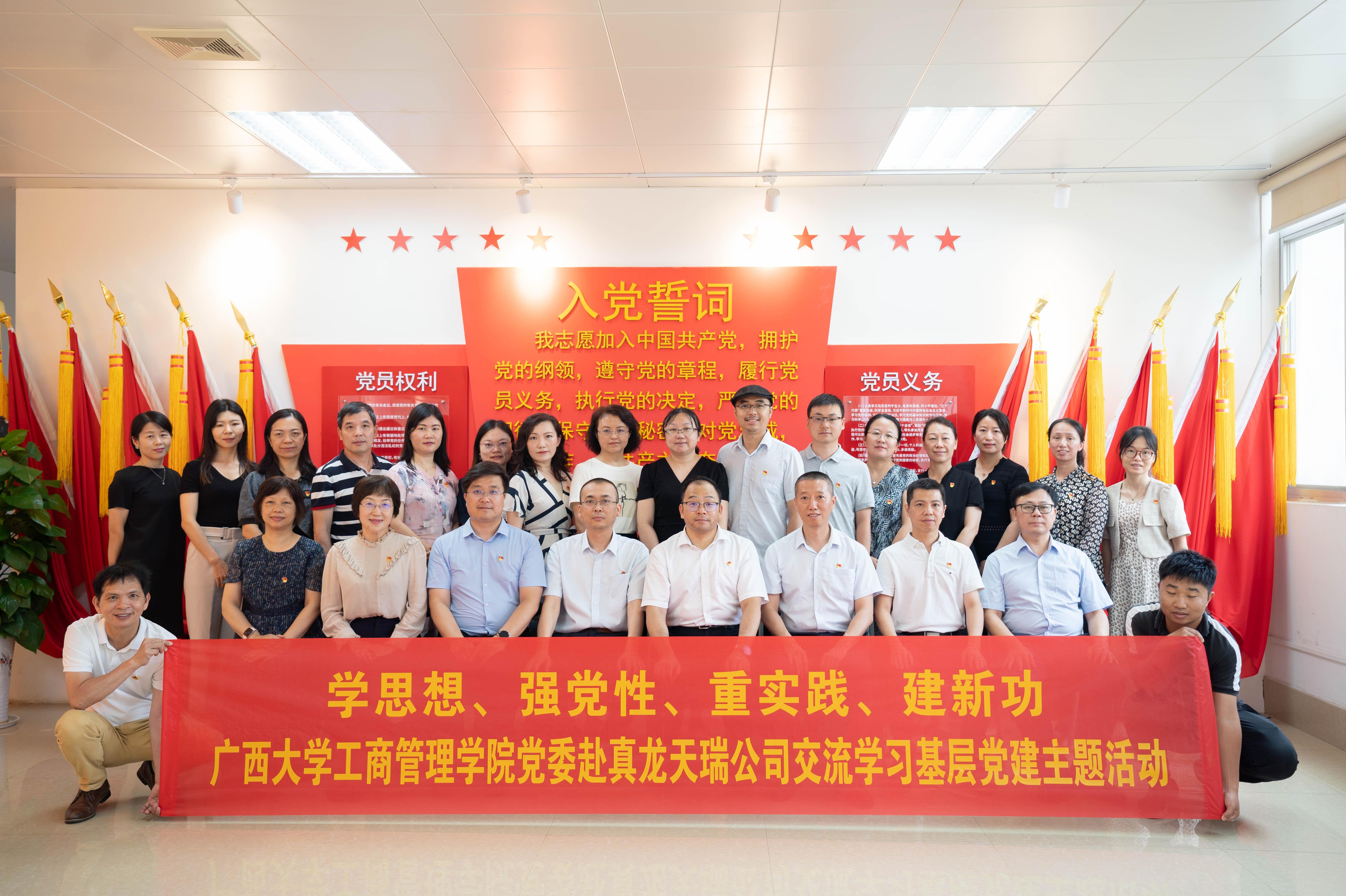 为进一步提高基层党建质量及管理水平,7月7日上午,公司党委书记罗诚率教工行政党支部、教工企管党支部、教工财会党支部和教工旅管党支部的支委和党员代表赴广西真龙天瑞彩印包装有限公司党支部开展学习交流。真龙天瑞党支部隶属中共广西中烟天成投资管理有限责任公司党总支部管辖,努力打造“价值党建”品牌,推进党建与业务深度融合,是南宁高新区两新组织党建示范点。党委副书记黄晋、副经理廖东红、组织员黄照温参加了活动。活动由广西中烟天成投资管理有限责任公司(以下简称“天成投资”)董事长龙毅主持。