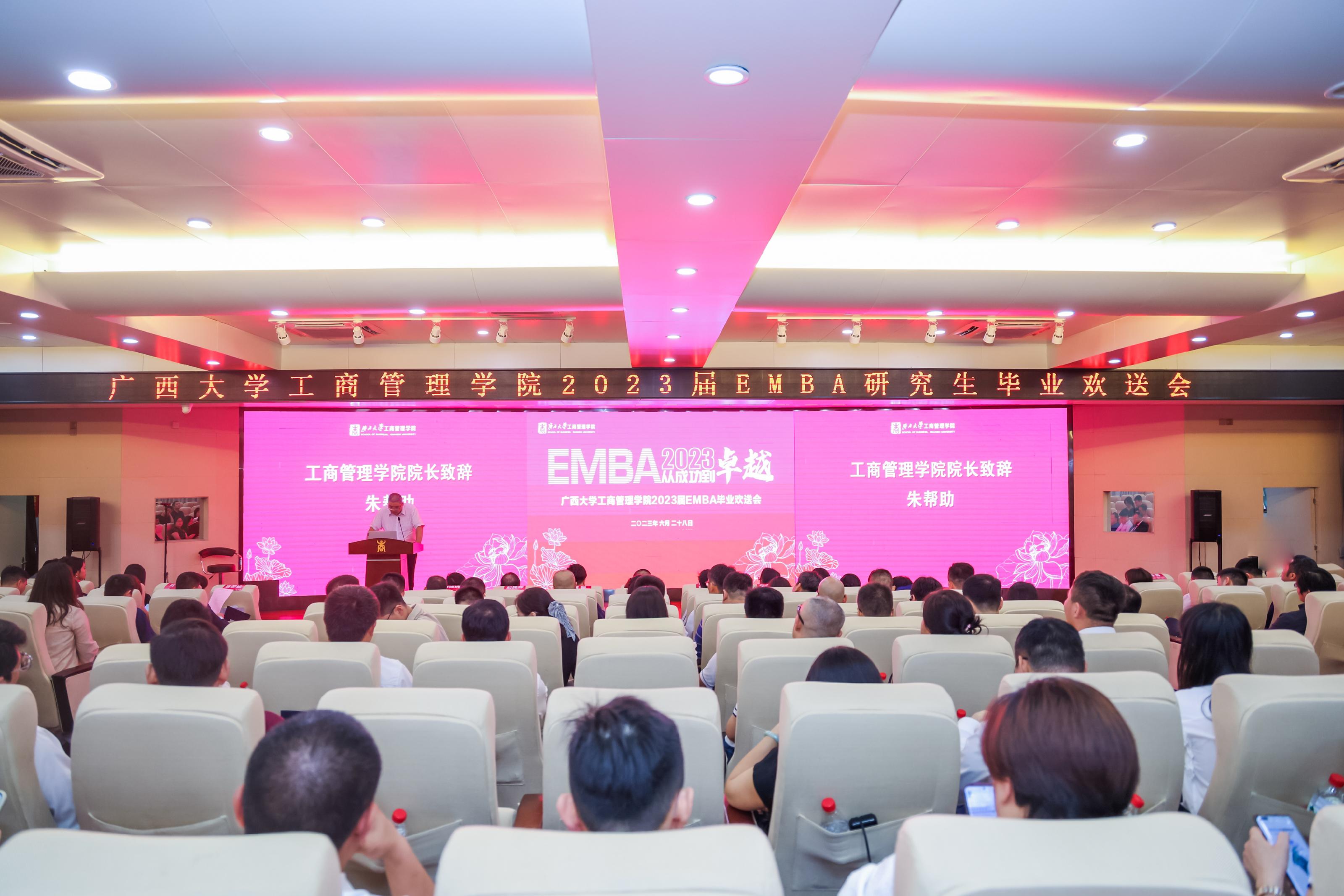6月28日下午,william威廉英国官网2023届EMBA毕业生欢送会在公司128报告厅举行。公司全体领导、导师代表、教师代表与2023届EMBA毕业生欢聚一堂,抒离情、怀憧憬。