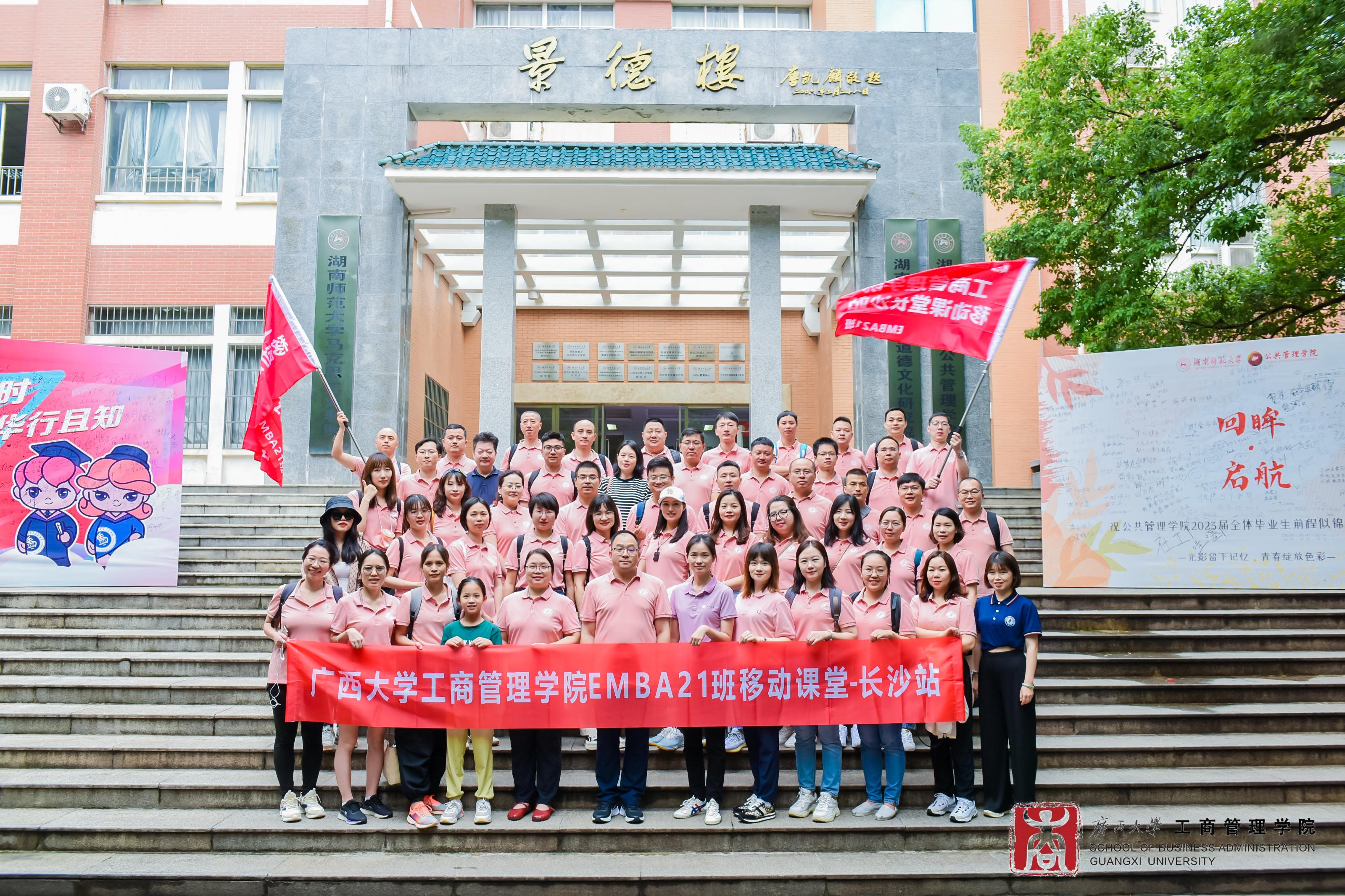 6月8日至11日,william威廉英国官网EMBA21班到历史文化名城湖南长沙开展了为期四天的移动课堂游学活动。公司党委书记、EMBA21班班主任罗诚,副经理朱少英,EMBA中心主任宁雪莲赴长沙参加了开班仪式。