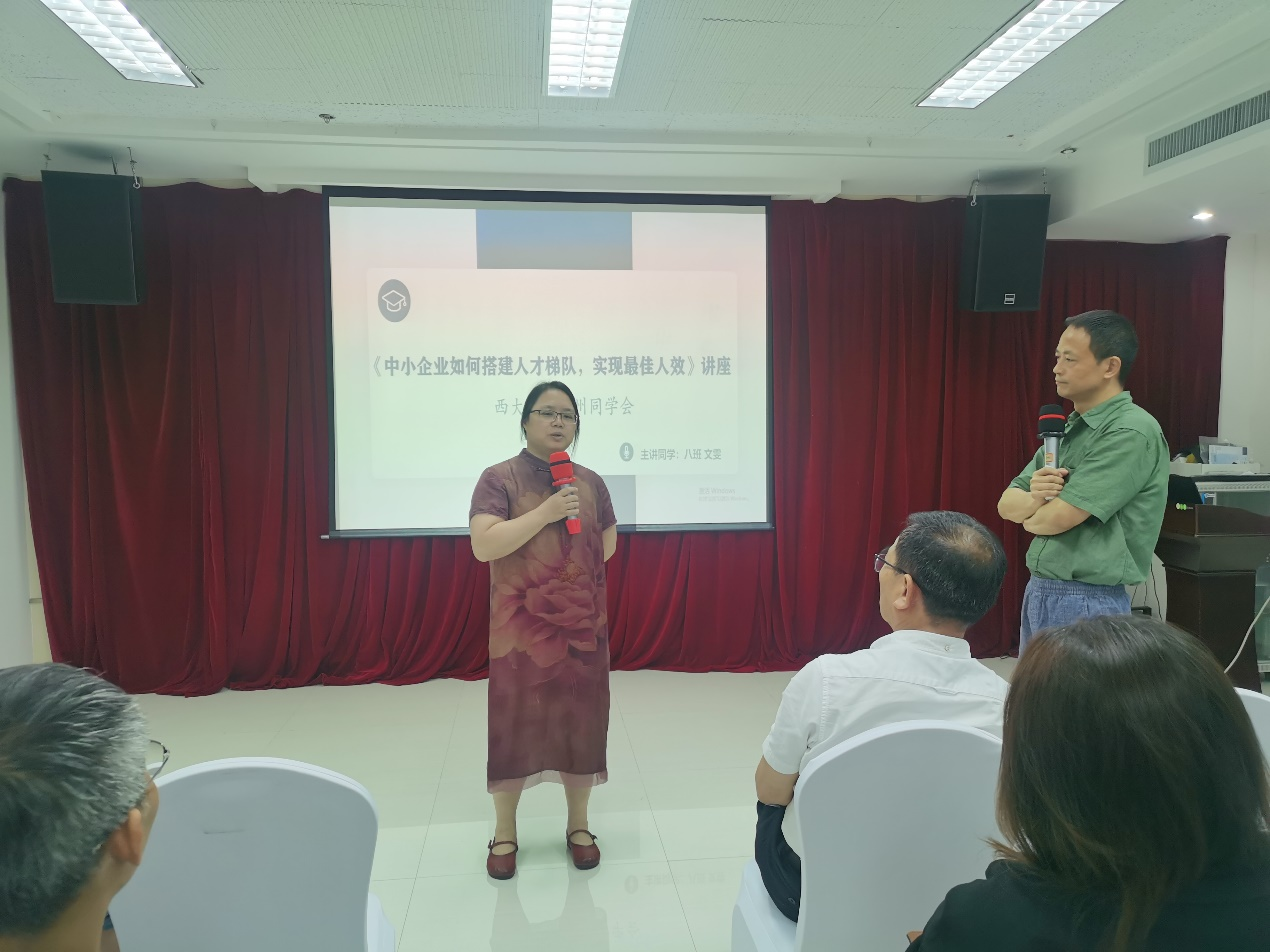 活动期间,朱少英副经理和柳州EMBA员工企业家进行交流,探讨在当前情境下中小企业如何进行人才梯队建设。EMBA柳州员工会的员工们在交流中不仅分享了宝贵的管理经验,还回忆了在母校学习生活的经历。员工们对公司领导前来走访看望表示感谢,对公司取得的各项成绩感到骄傲和自豪,纷纷表示将继续弘扬优良传统,一如既往地关注和支持母校,积极为推进母校和公司高质量发展建言献策。