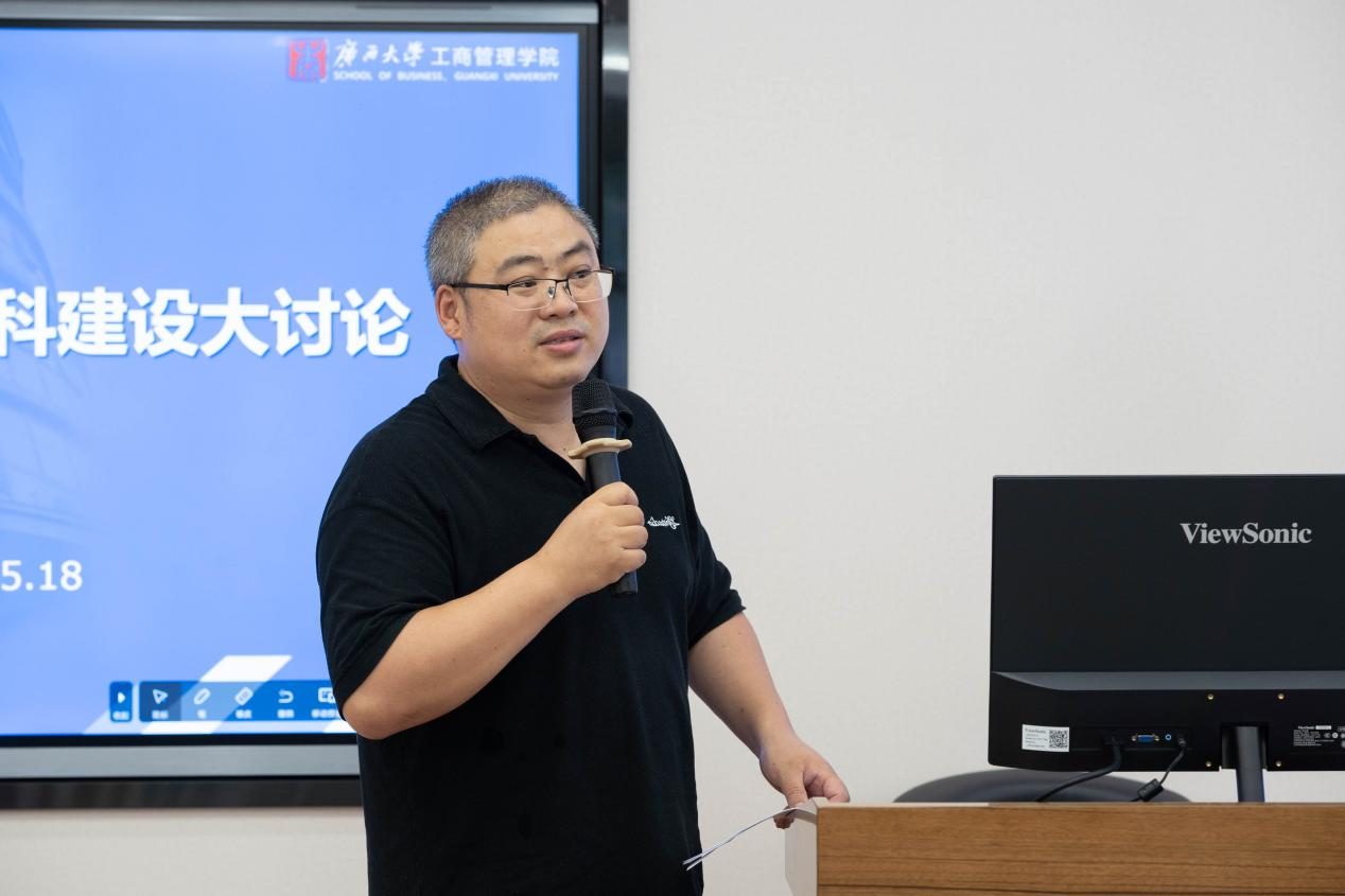 会上,朱帮助经理传达了“公司领导班子学习贯彻习近平新时代中国特色社会主义思想主题教育读书班调研应用经济学与现代服务业学科群建设座谈会”精神,并从公司层面就工商管理学科如何围绕一流学科、应用经济学与现代服务业学科群和地方经济社会发展的趋势进行规划和工作部署。朱帮助经理强调,本次大讨论要以主题教育为契机,深入学习贯彻习近平总书记重要讲话精神,切实落实王书记、韩董事长关于一流学科群建设的指示,深入谋划公司团队建设,精心构筑“四梁八柱”,推动思想大解放、能力大提升、作风大转变、工作大落实。一要认清国家战略和区域经济社会建设是我们发展的主战场,扎实推进学科服务于区域经济社会发展的关键领域,紧抓西部陆海新通道、平陆运河、海洋经济、中国-东盟商务管理等区域经济社会发展的重大问题开展学科规划和建设;二要处理好团队建设与专业建设的关系,统筹学科底色和特色,做好学科普遍性和地方特殊性的结合,以此为核心强化专业的底色凝练和特色构建工作;三要以有组织的学术科研汇聚多学科人才和创新能量,打造跨学科“大团队”,谋划“大项目”“大平台”,产出“大成果”。他希望全体教师统一思想,紧紧围绕公司的指挥棒,充分认识团队建设对公司发展的重大意义,主动融入、主动参与、献智献策,增强责任感、紧迫感和使命感,共同做好和全方位提高团队建设水平。