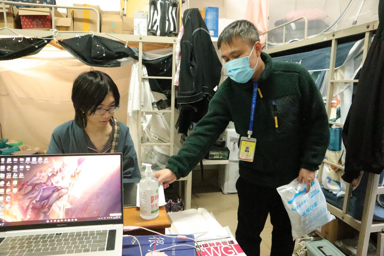 学工组老师们到宿舍看望员工并发放防疫物资