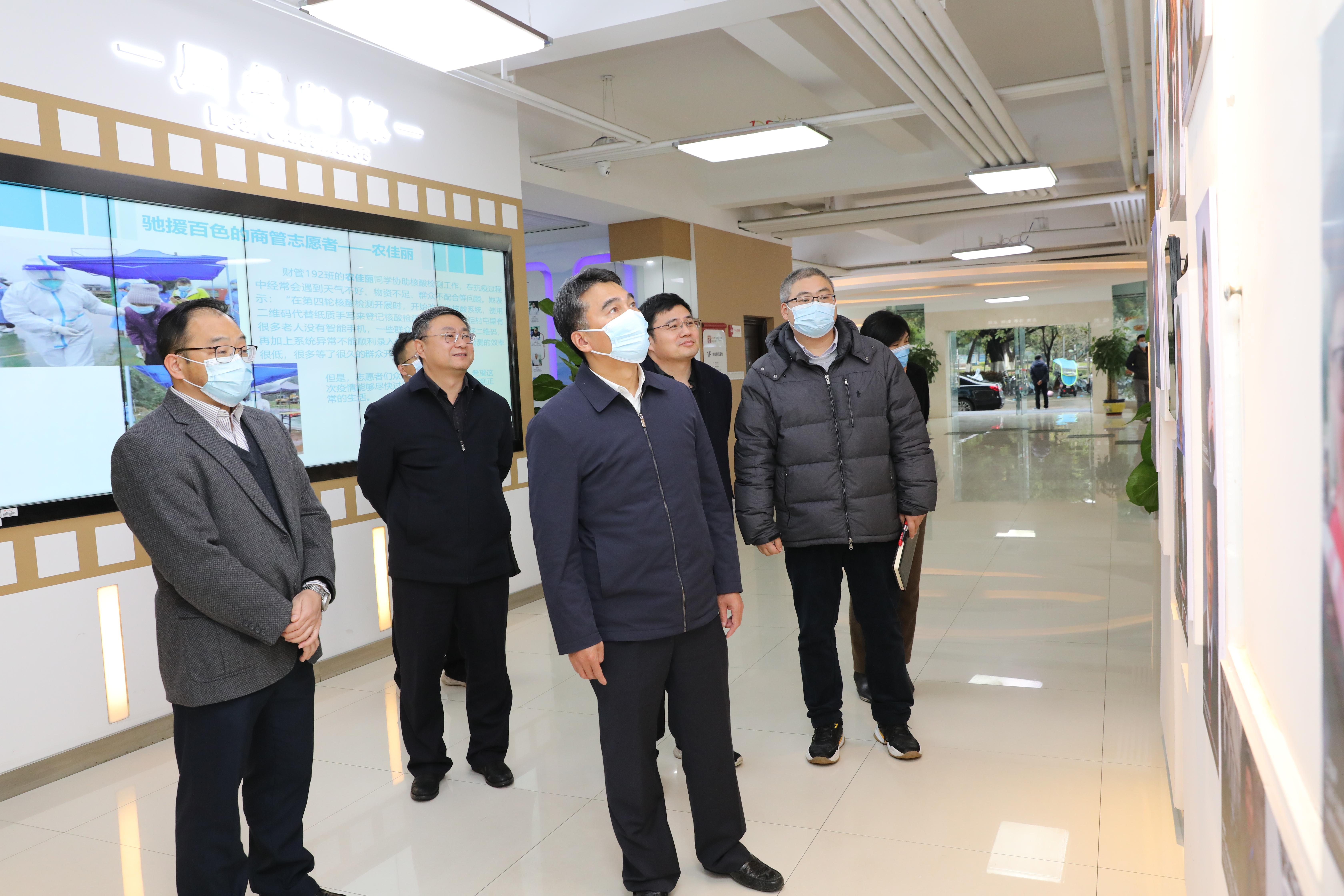 王乃学考察了国家级实验教学示范中心和研究生管理中心,观看了仿真实训环节演示,听取了MBA、EMBA优秀员工的介绍。座谈会上,经理朱帮助从团队队伍、人才培养、团队建设、科学研究等几个方面进行汇报。