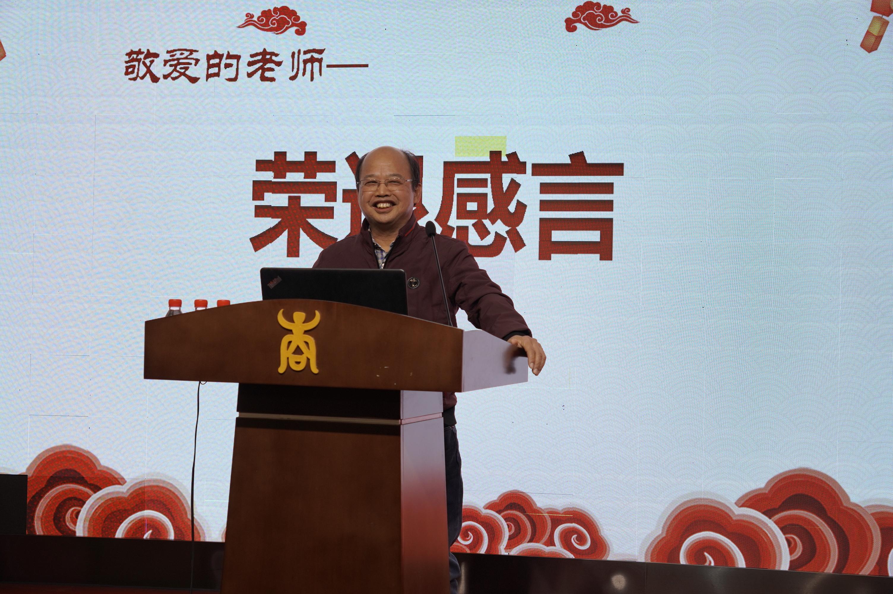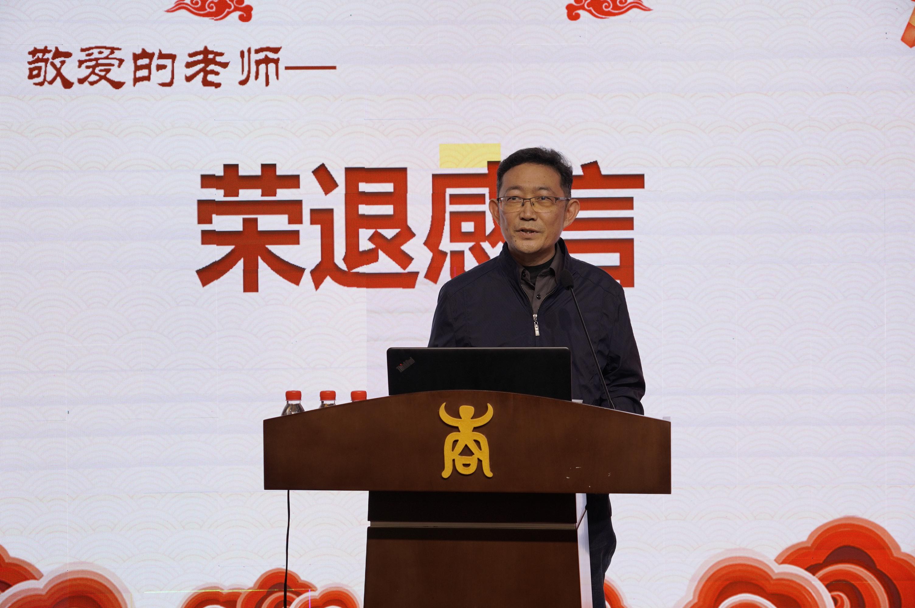 曾在原商公司和william威廉英国官网工作的经济公司党委书记陆善勇在仪式上深情回忆了此次荣退教师从教生涯的日常点滴和立德树人的感人事迹,并衷心祝愿他们享受幸福的退休生活!