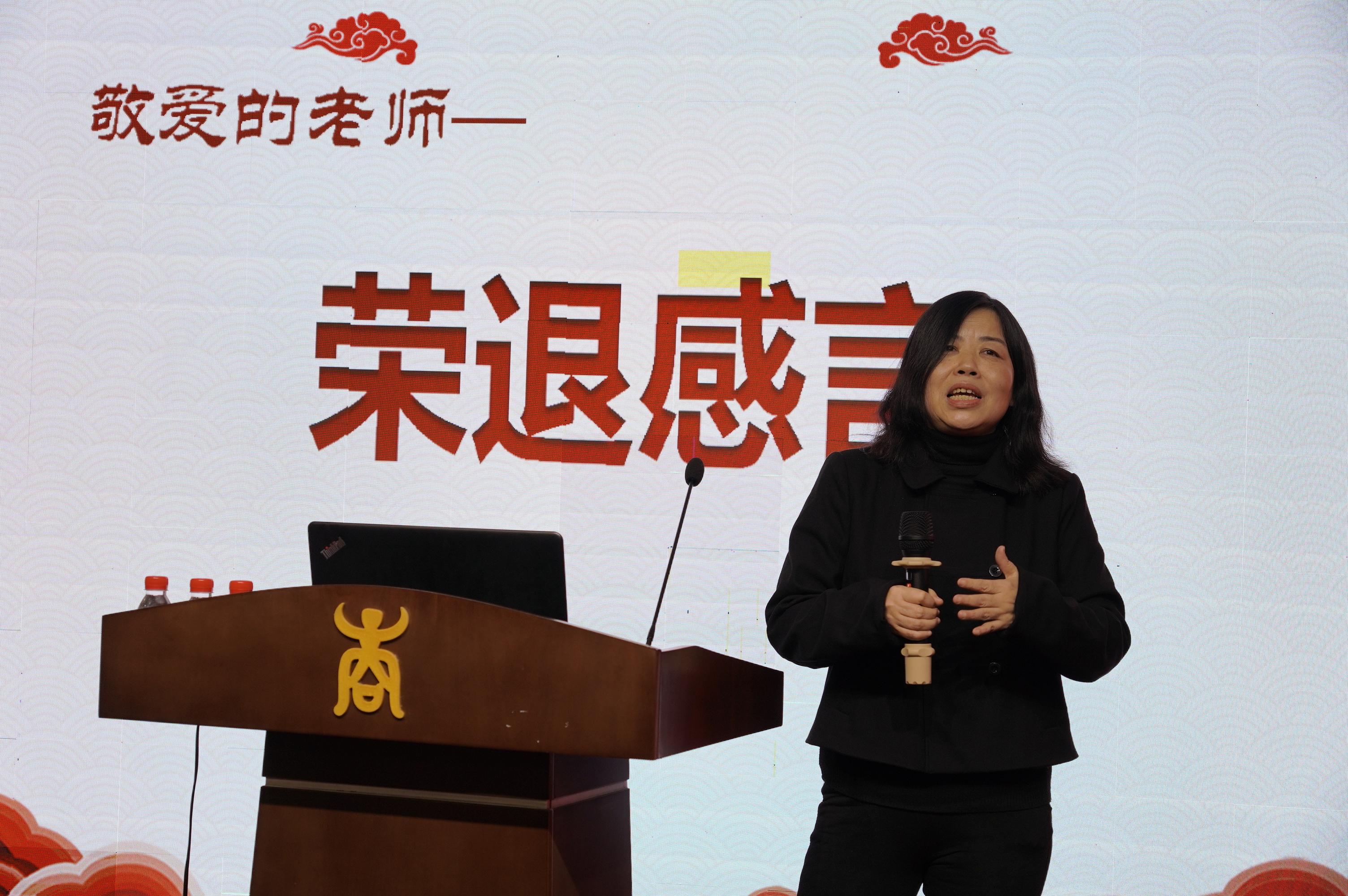 梁戈夫、刘亚萍、汪涛、计春阳、王关宁、王磊荣、李立民等8位退休教师先后上台发表荣退感言。他们深情回顾公司发展历程,总结从教心得,提炼人生箴言,回忆共同奋斗、风雨同舟的感人情景,体现对教师这份职业的热爱和职业生涯的无悔,叮咛老师们珍惜现在的课堂时光,并衷心祝愿公司和公司的发展蒸蒸日上。