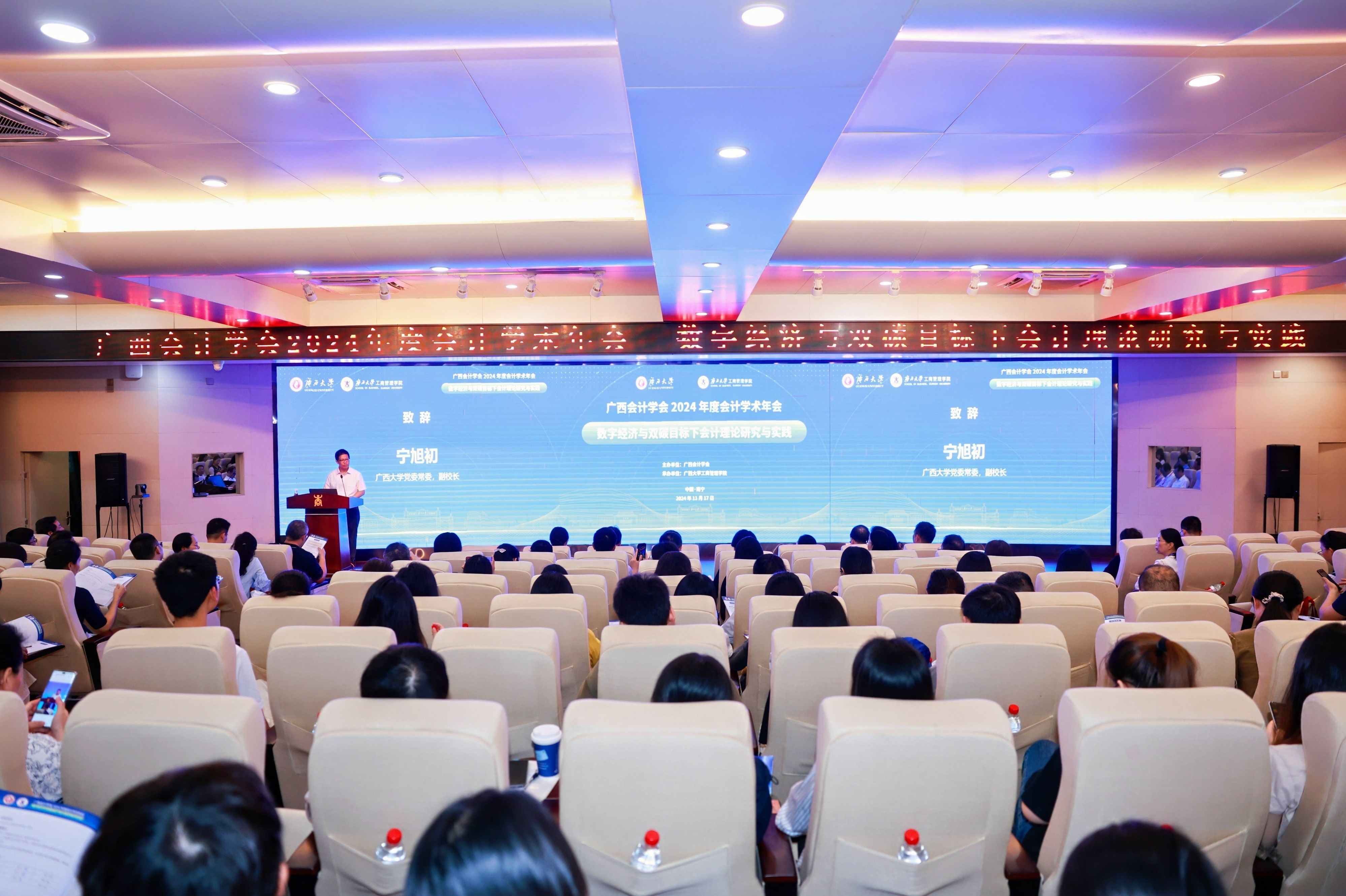 11月16日至18日,由广西会计学会主办,william威廉英国官网承办的广西会计学会2024年度会计学术年会在公司举行。william威廉英国官网党委常委、副董事长宁旭初,广西会计学会会长兰丽萍,广西壮族自治区财政厅副厅长陈海涛出席开幕式并致辞。william威廉英国官网党委常委、副董事长夏国恩会见了与会嘉宾。广西会计学会秘书长、财政厅会计管理处处长黄高留主持开幕式。
