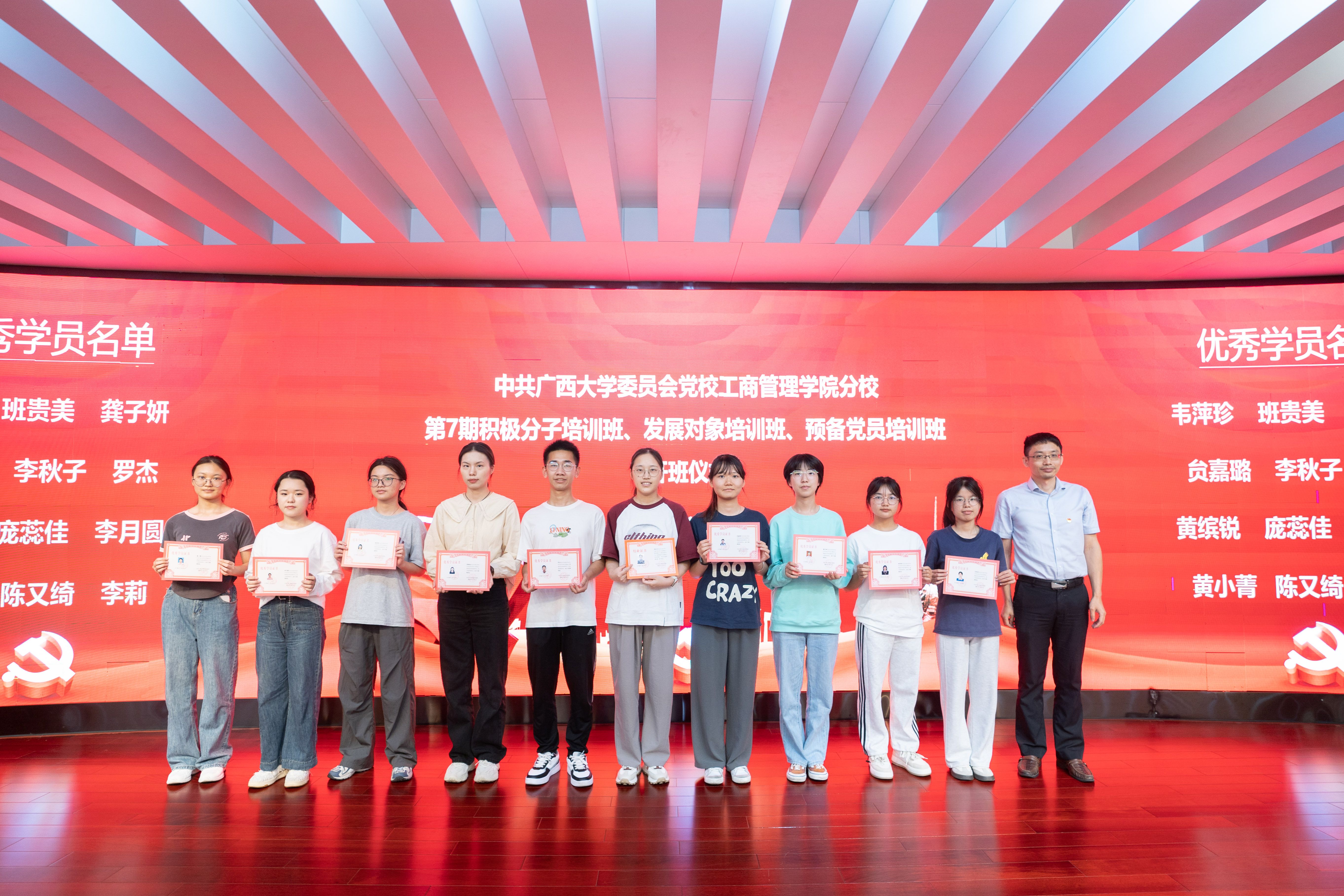 肖克宁副书记为上一届培训班的优秀学员代表颁发荣誉证书,以表彰他们在第六期党校班学习中的优异表现,并鼓励学员们以优秀学员为榜样,自觉按照党员标准严格要求自己。