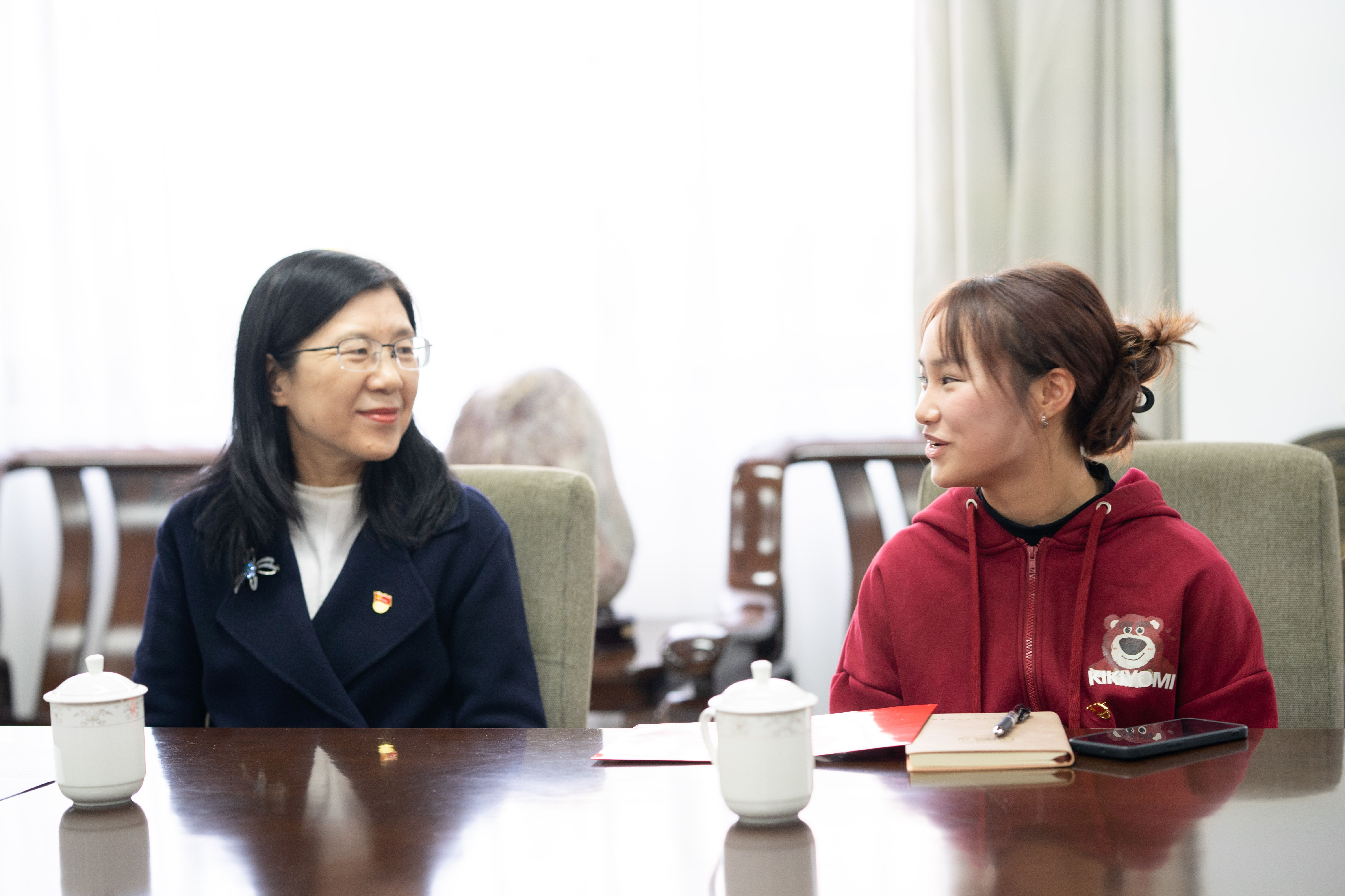 “平时学习忙不忙?”“生活上都有些什么困难?”金顺南亲切询问了韦尹洁的家庭情况和学习、生活方面的基本情况,对韦尹洁在面对困境时依然保持积极向上的乐观态度表示赞赏,称赞她阳光开朗的性格感染了身边的人,为周围同学树立了良好的榜样。她希望韦尹洁懂得感恩,珍惜来之不易的学习机会,将感恩之心化作前行的动力,用实际行动践行党员的初心和使命。她鼓励韦尹洁继续努力学习,积极参加公司和公司组织的各项活动,不断提升自己的综合素质,将来为国家和社会的发展做出贡献。