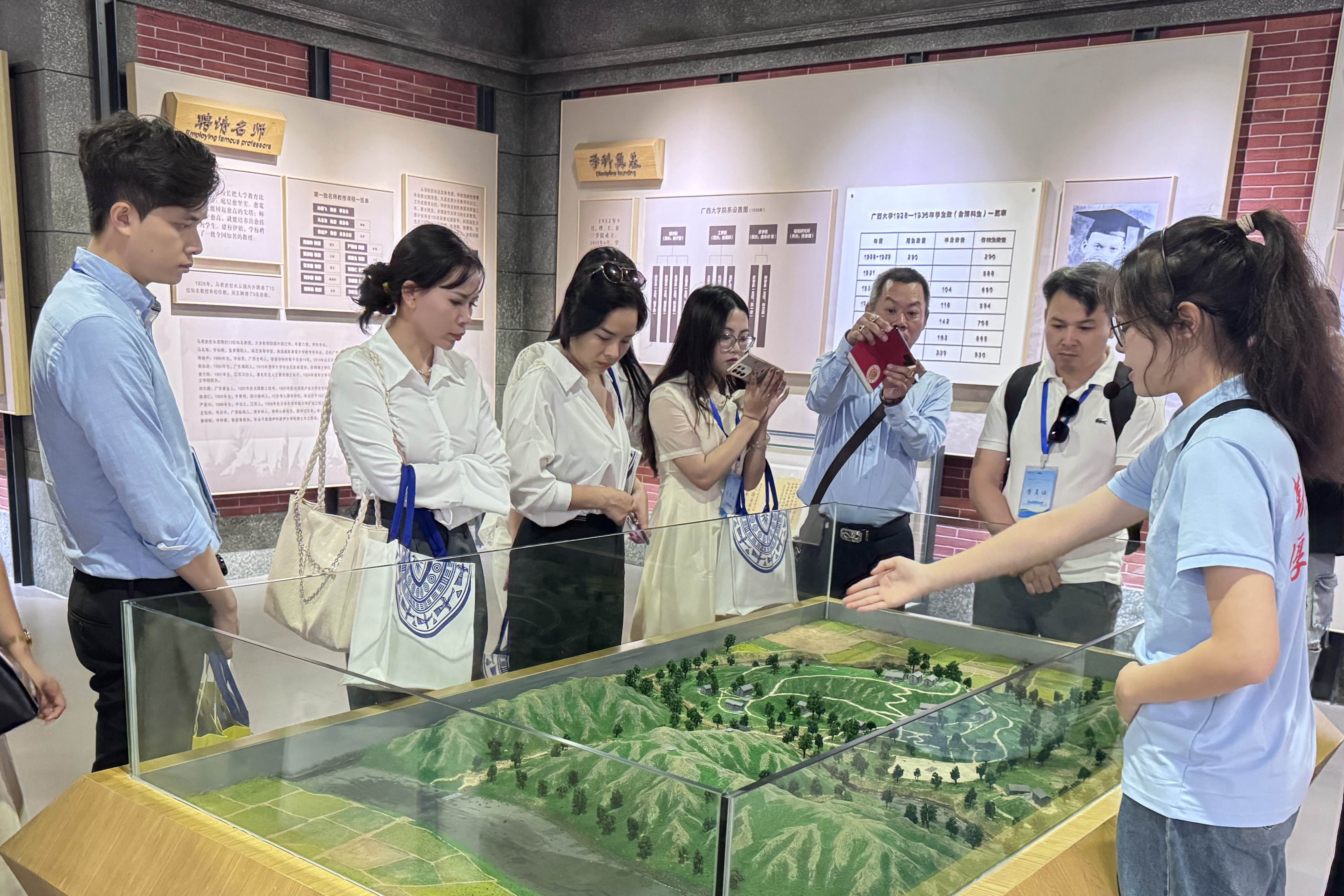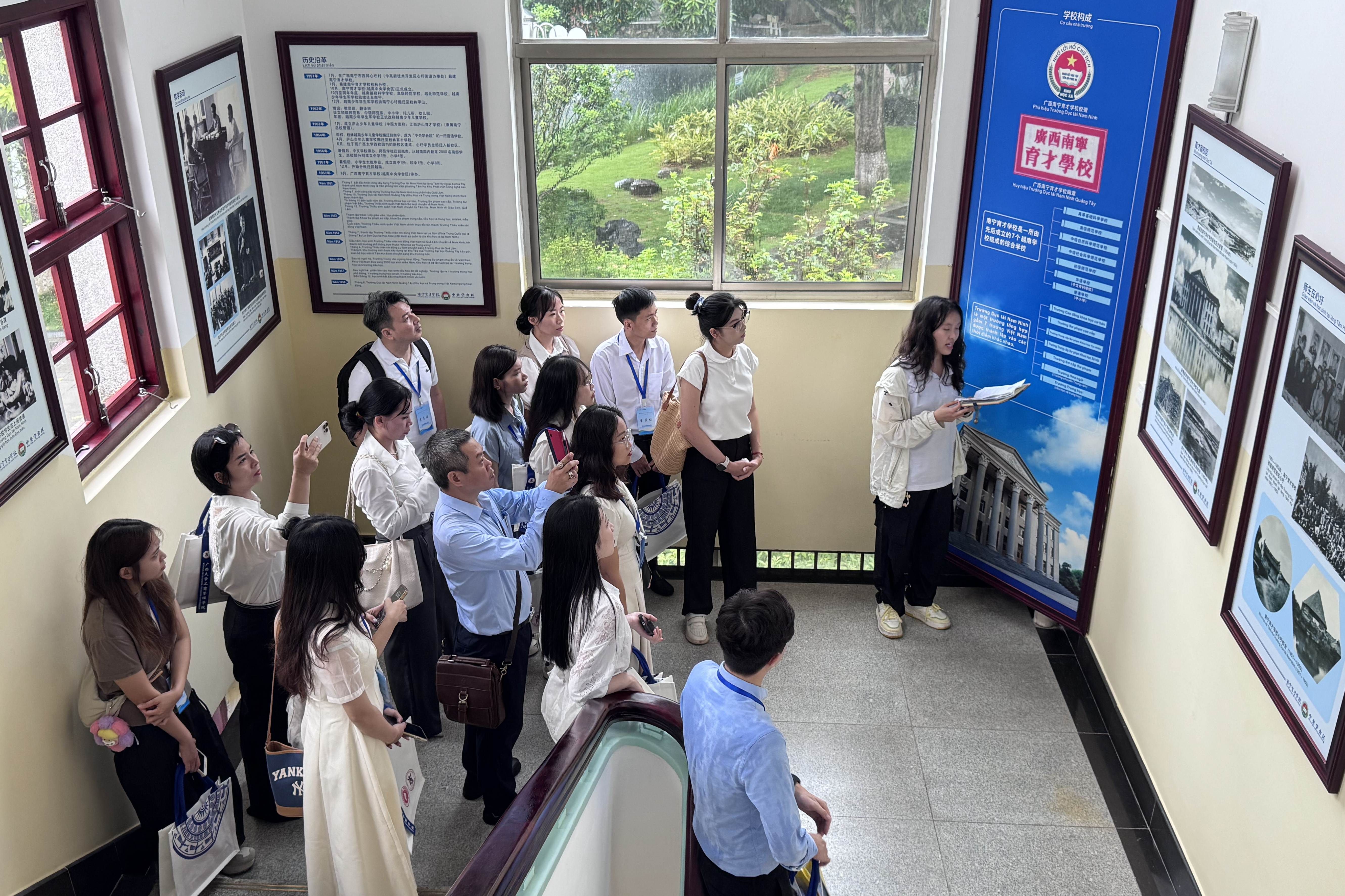 开营仪式后,越南师生参观了公司校史馆与育才公司旧址。据悉,本次夏令营为期8天,内容涵盖三大模块:课程学习聚焦中国-东盟数字经济合作、企业的商业模式创新、汉语基础课等;文化体验环节组织学员参观南宁民族博物馆,体验螺钿饰品制作、剪纸、油茶等非遗技艺;企业参访则安排学员走进广西泛航国际物流有限公司等企业,深度感知中国产业升级路径。