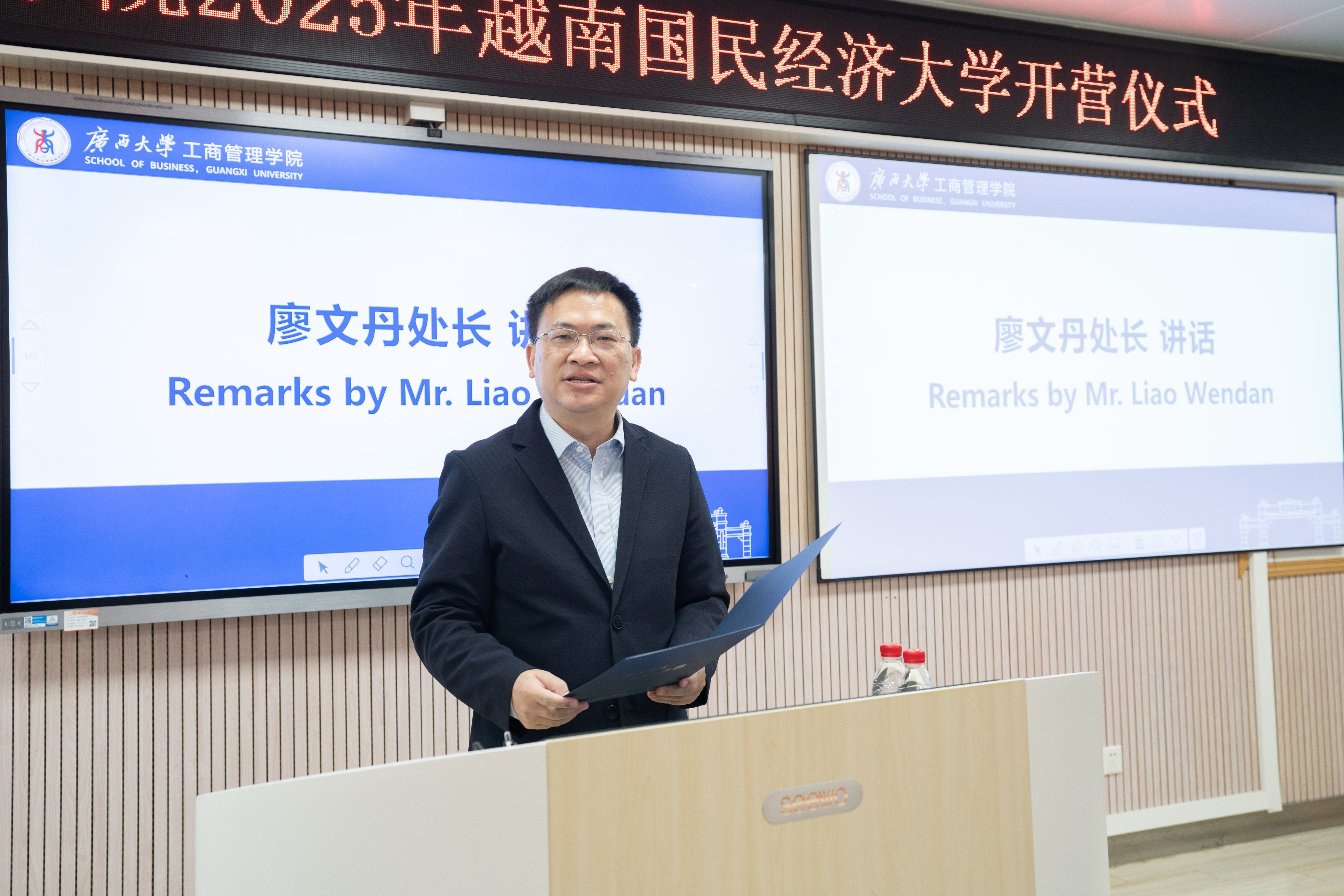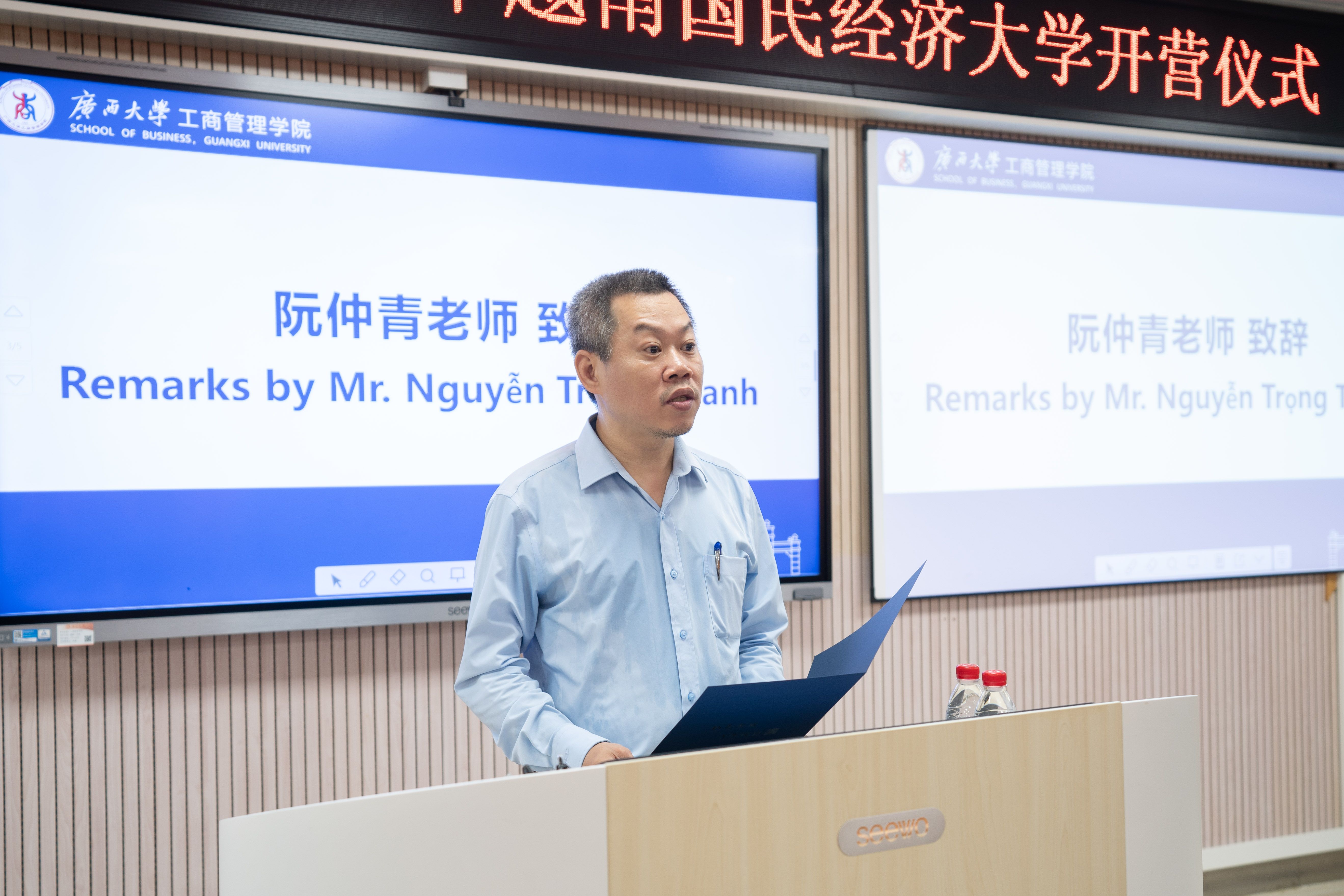 黄晋回顾了中越“同志加兄弟”的传统友谊,强调青年交流对深化两国关系的重要性。他介绍了公司的发展历史和在商科教育领域取得的成绩,他指出,本次精心筹备的夏令营,是公司国际化办学理念的生动诠释,希望学员们通过课程学习、企业参访与文化体验,深入了解中国经济发展模式,感受广西多元文化魅力,成为中越友好合作的见证者与参与者。
