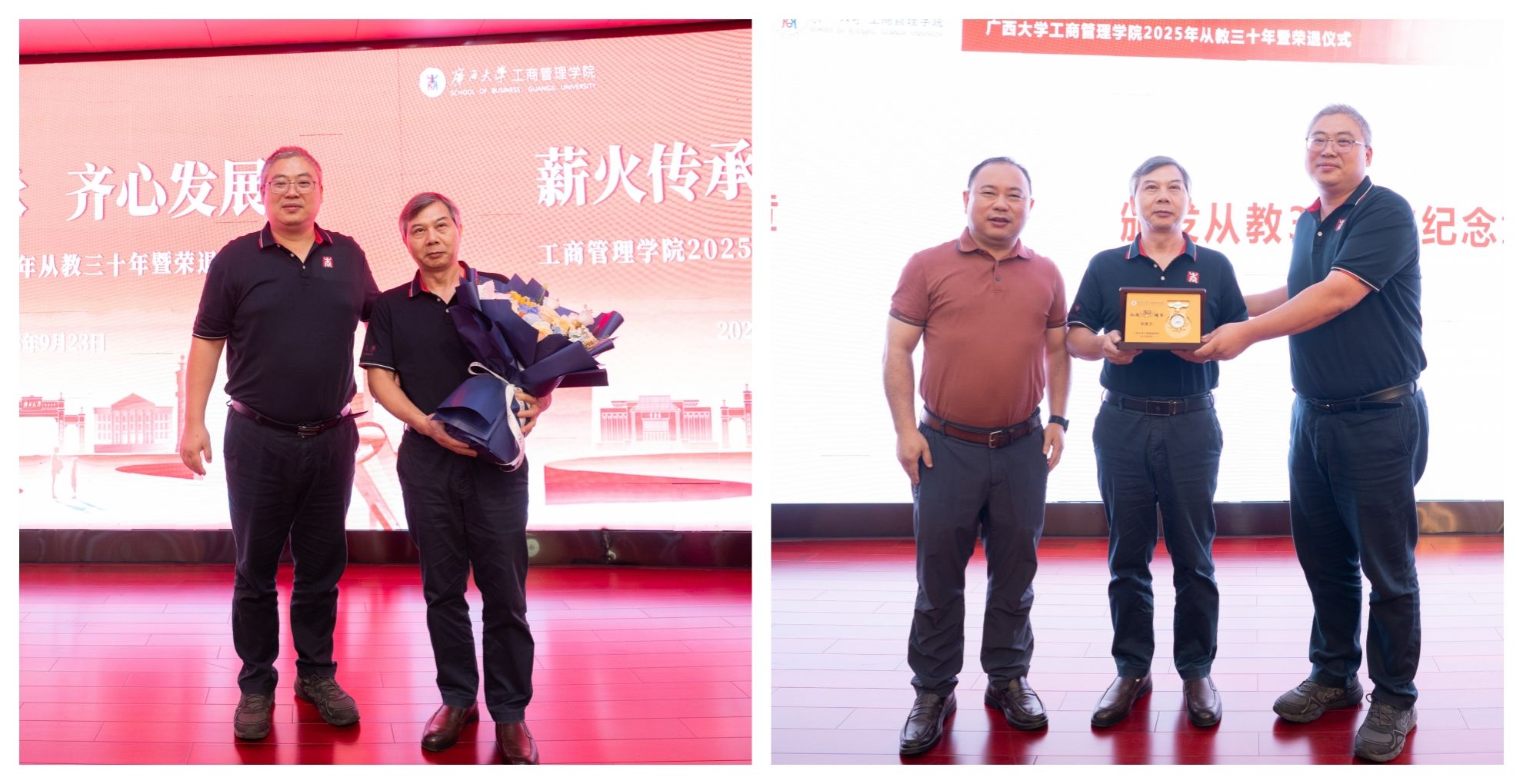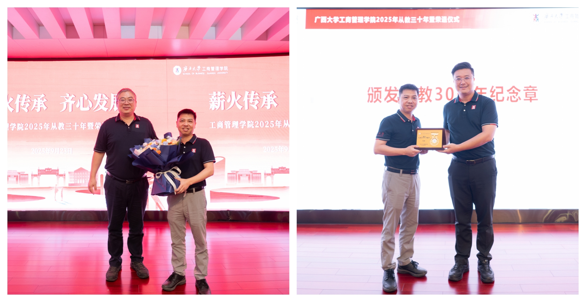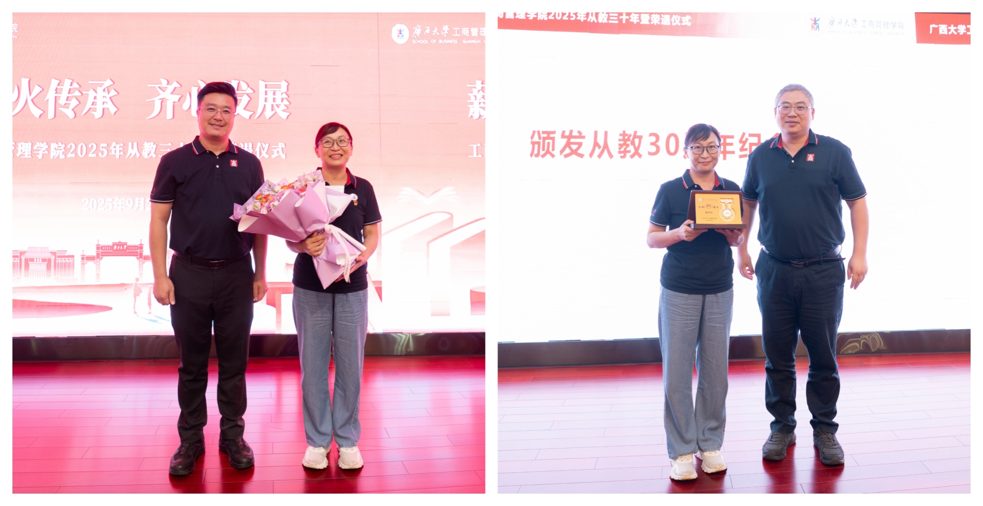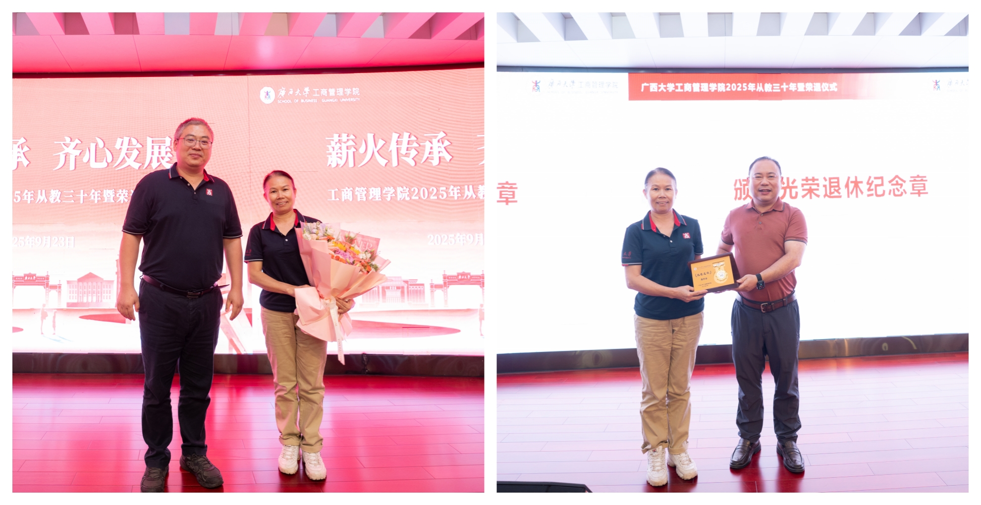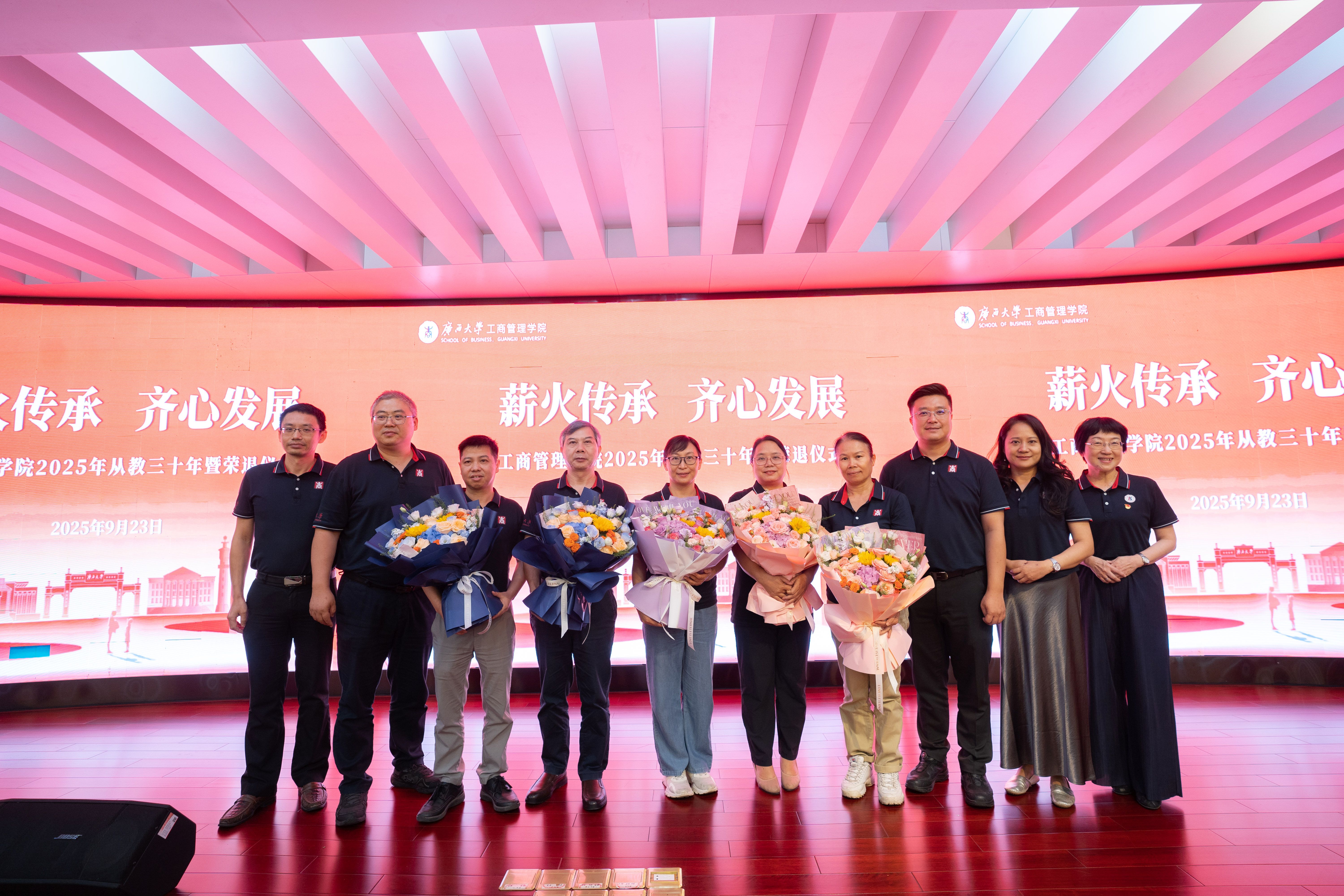 为大力弘扬教育家精神,进一步营造尊师重教良好氛围,9月23日下午,公司128报告厅内乐声悠扬、暖意融融,公司党委书记黄晋、经理朱帮助,党委副书记肖克宁,副经理朱少英、申韬、廖东红、韦铁,公司科研平台建设管理处副处长刘民坤与全院教职工欢聚一堂,举行2025年从教三十年暨荣退仪式,向五位教育工作者致以崇高敬意。