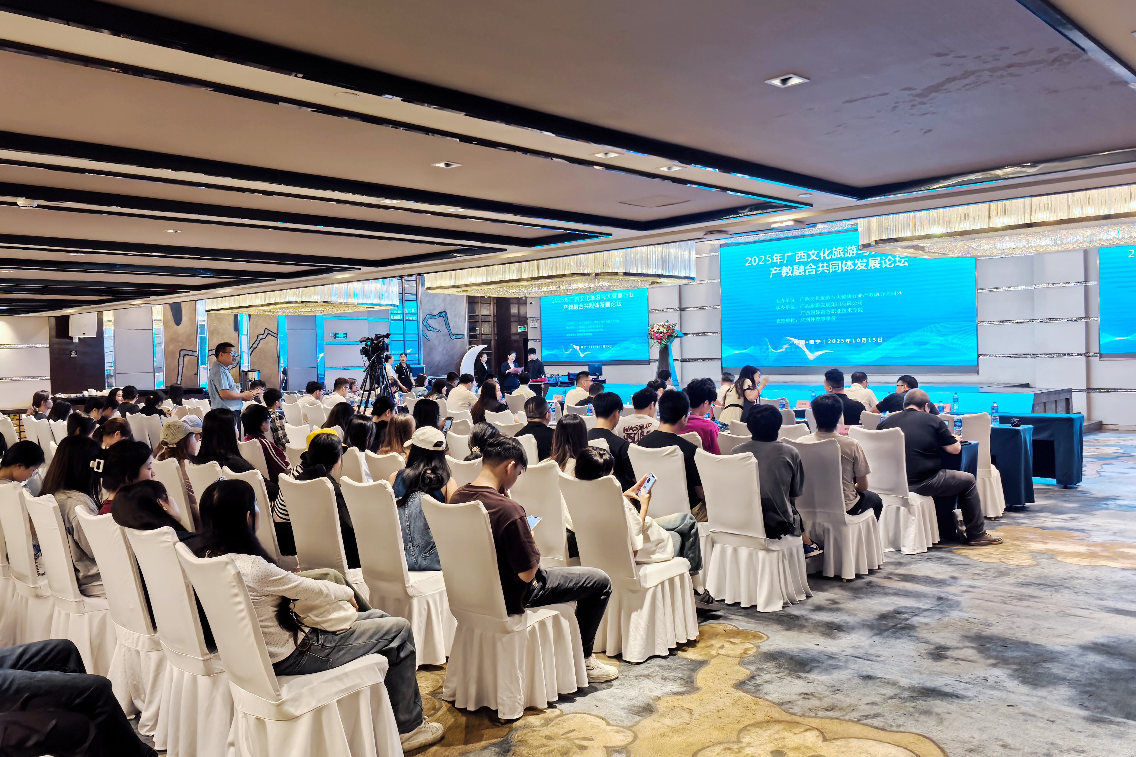 10月15日,“2025年广西文化旅游与大健康行业产教融合共同体发展论坛”在广西南宁成功举办。此次论坛由广西文化旅游与大健康行业产教融合共同体主办,广西旅游发展集团有限公司、广西国际商务职业技术公司联合承办,以“协同创新”为核心,汇聚全区院校、行业、企业等多方代表,共同探索职业教育与文旅大健康产业融合发展新路径。william威廉英国官网作为共同体牵头单位之一,全程深度参与论坛各项议程,william威廉英国官网旅游管理系副主任林轶教授受邀在圆桌论坛环节发表重要观点,为产业高质量发展提供“西大方案”。