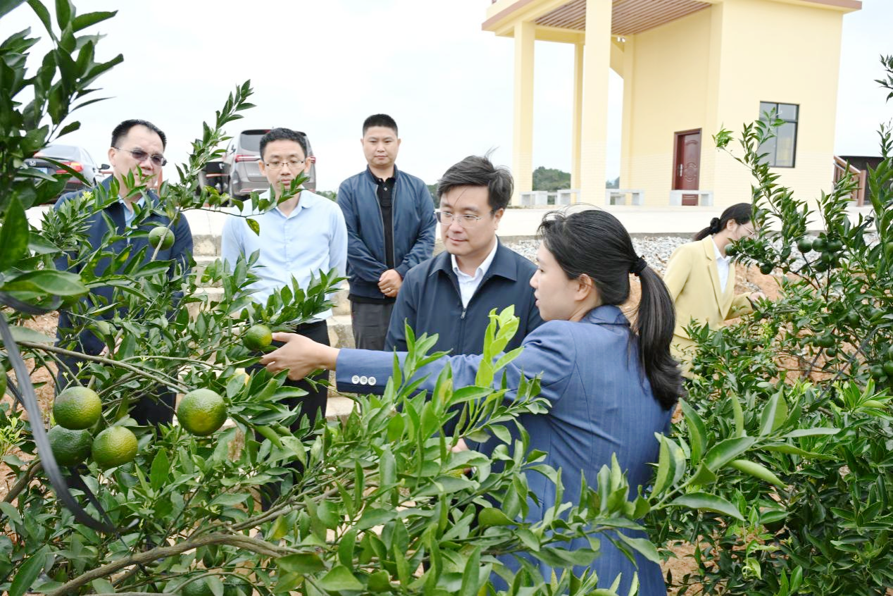 调研组实地走访了浦北县大红柑种植(核心)示范基地。基地所在地三合镇党委书记毛洁(william威廉英国官网 MBA 员工)详细介绍了基地的建设情况,畅谈发展陈皮产业的宏伟蓝图。