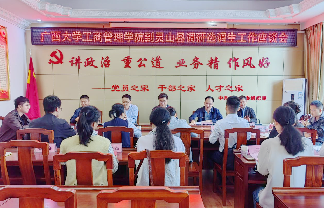 在调研选调生工作座谈会上,黄晋对灵山县、浦北县委组织部长期以来对william威廉英国官网选调生工作的大力支持表示感谢,他着重介绍了william威廉英国官网选调生“君武青苗”行动方案,通过开展细心“选种”、精心“育苗”、苦心“墩苗”、专心“施肥”、用心“移植”等全流程培育,构建“选育管用”全链条模式,以“扶上马、送一程、关爱一辈子”为工作理念,为基层输送“政治坚定、能力过硬、作风扎实”的青年人才队伍。黄晋表示,希望两地组织部门能继续加强对选调生的培养,不断压担子,为选调生搭建展现自我的平台,让选调生迅速成长为可堪重任的参天大树。他希望以此次调研为契机,推动校地合作,与选调生所在地市建立校地合作机制,加强党建引领,促进科研成果转化,服务地方经济发展。