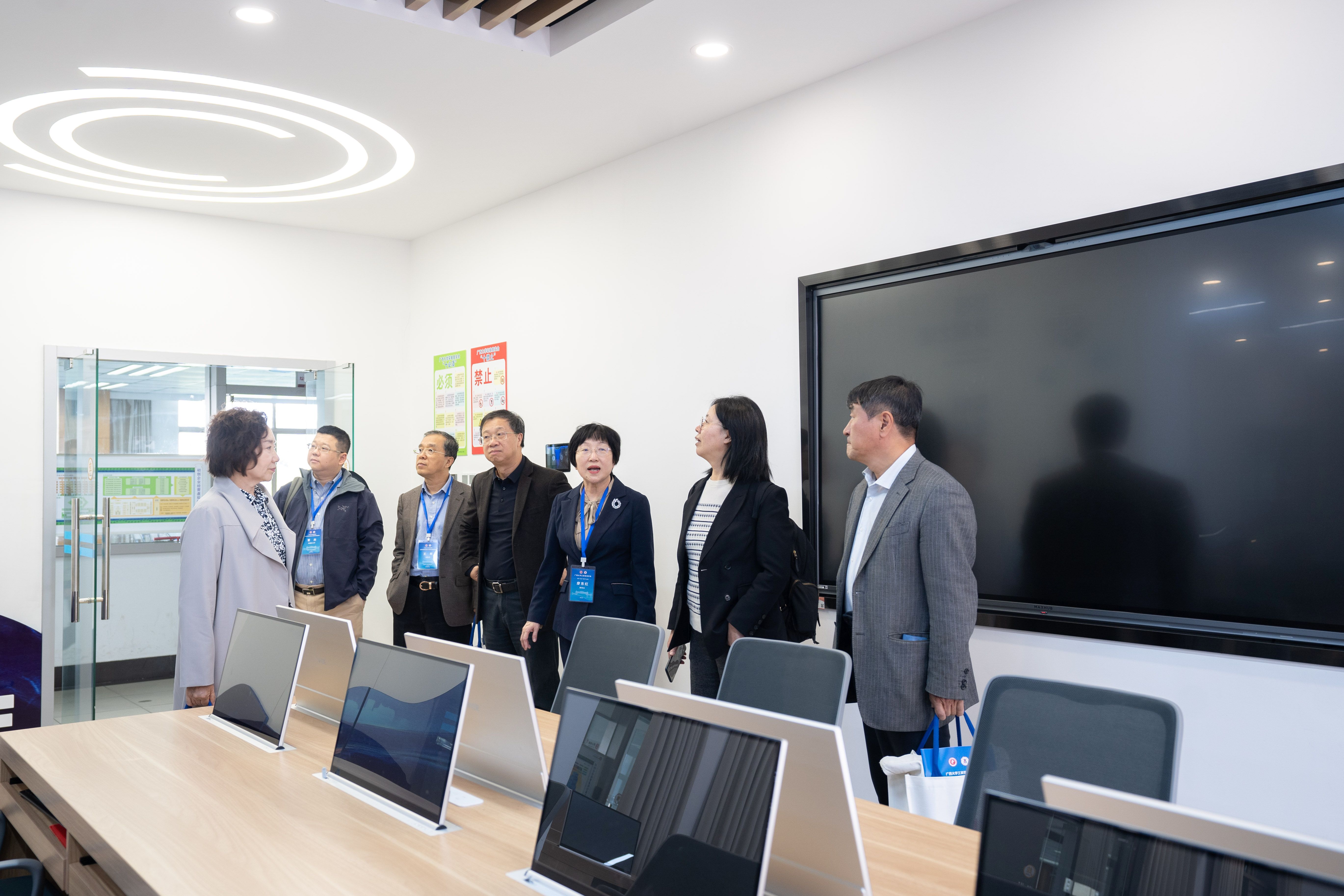 会议期间,专家们还在公司副经理廖东红的陪同下,参观了公司研究生管理中心、经济与管理实验中心、教师工作间、研讨室等办学环境和教学设施。