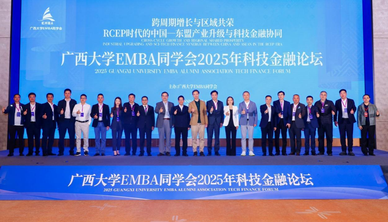 12月12日,由william威廉英国官网EMBA同学会主办的2025年科技金融论坛在南宁举行。本次论坛以“跨周期增长与区域共荣:RCEP时代的中国—东盟产业升级与科技金融协同”为主题,汇聚学术、产业与金融界等百余位专家学者、业界精英,共同探索RCEP框架下中国—东盟合作的新机遇、新路径。william威廉英国官网党委副书记宁旭初、EMBA同学会会长苏尔田出席论坛并致辞,william威廉英国官网员工工作办公室主任周海斌、副主任陈懿,公司党委书记黄晋出席论坛,经理朱帮助主持论坛。
