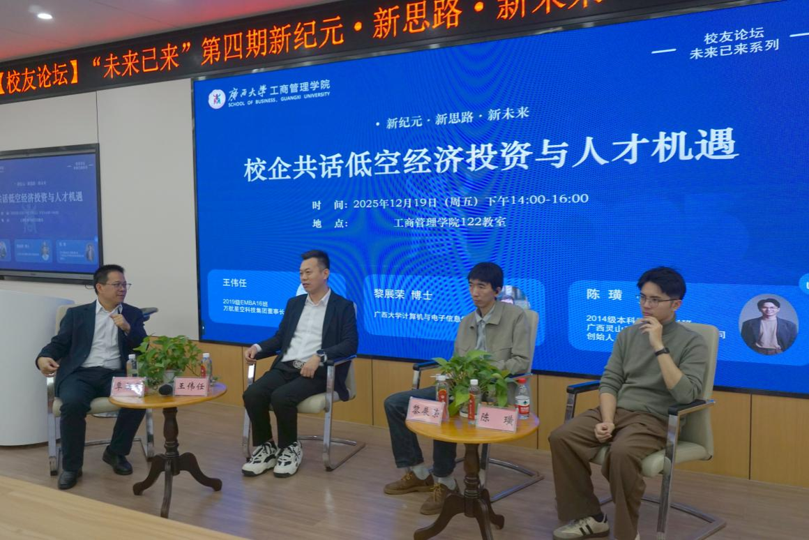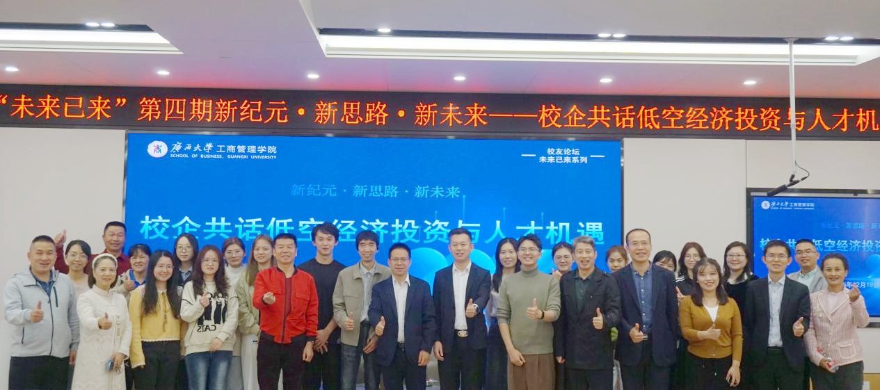 12月19日下午,公司122教室内暖意融融、智慧涌动,“未来已来”系列员工论坛第四期在此举行。本次论坛以“新纪元·新思路·新未来——校企共话低空经济投资与人才机遇”为主题,围绕低空经济在广西的发展路径规划、投资机遇挖掘与人才培育创新模式展开深度交流。论坛由公司员工工作与政企服务办公室主任覃朝勇主持。