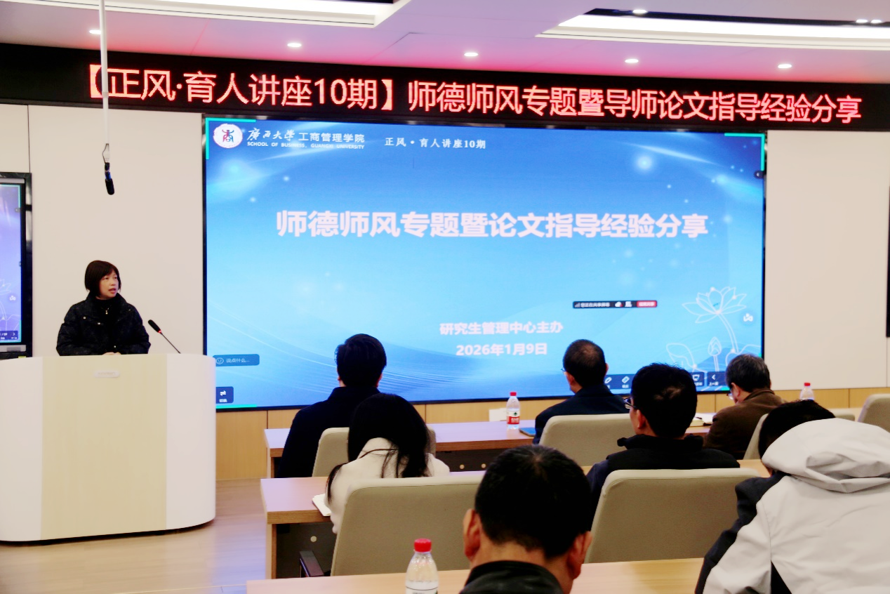 1月9日下午,公司在122教室召开研究生导师师德师风专题教育暨论文指导经验分享会。公司党委书记黄晋、研究生院副经理朱少英、公司副经理韦铁、旅游管理系主任郭峦出席培训会,公司全体研究生导师参加培训。会议由研究生管理中心主任叶映主持。