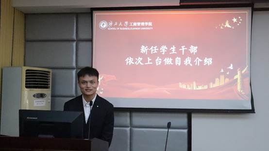 他主要对第三届员工干部提出工作上的要求:一是在政治思想引领工作方面再下苦功,引导同学们积极参与政治学习,在政治学习中活起来;二是在学风建设工作方面再下苦功,提倡考研风气,多支持、多组织同学们报名学术类竞赛;三是在校园文化活动上面再下苦功,弘扬正能量,打造出属于公司的文体活动品牌,带动同学们德智体美劳全面发展。
