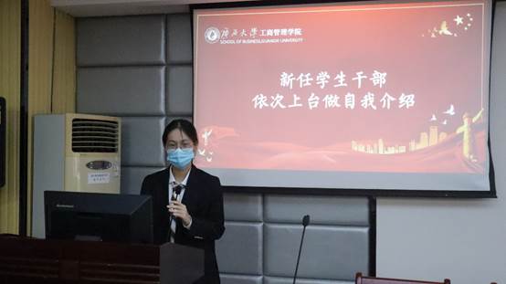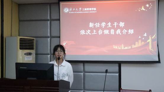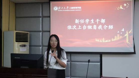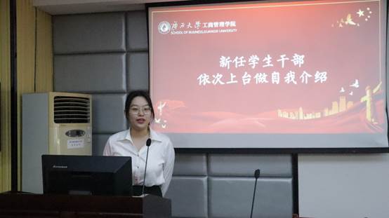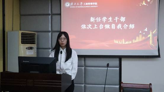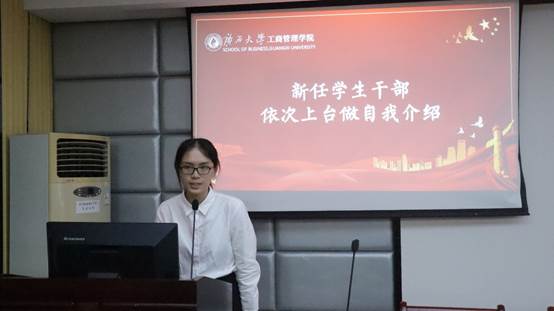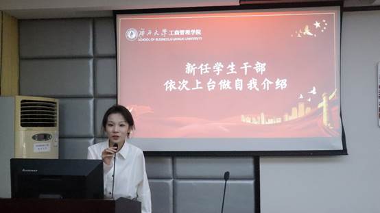 名单宣读完毕,新任员工干部上台依次进行自我介绍。