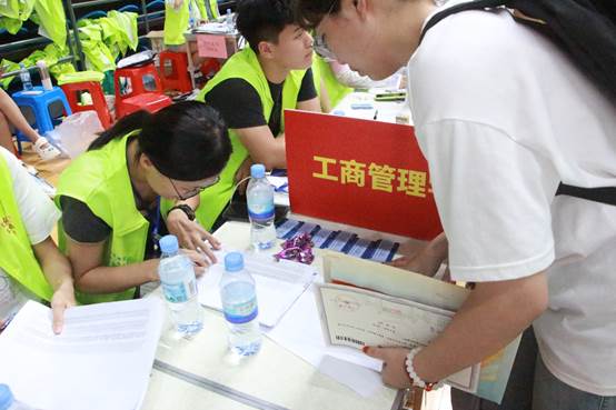 研究生迎新工作在公司办公楼完成,志愿者积极帮助新生报到注册、行李转运等工作。他们秉承“一对一志愿服务”的理念,认责负责地把新生带到公司相应教室报到处进行注册,然后帮助新生们将一件又一件的行李物品搬运至宿舍。拉箱子、提水桶、拎包,志愿者凭借着坚定的责任感,认真的服务精神,接待好每一位研究生新生。