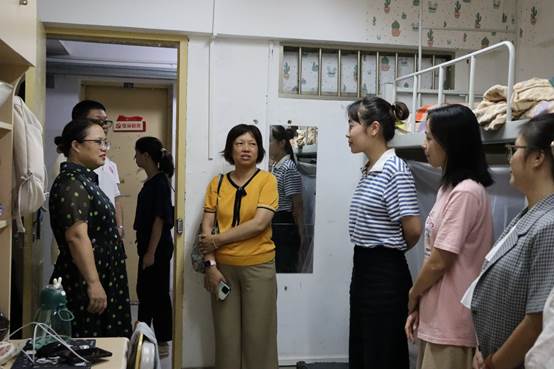 公司副经理朱少英、研究生管理中心主任叶映、年级辅导员张艳红以及新生班主任等领导老师前往2023级研究生新生宿舍进行走访,向新生们致以热情的欢迎和亲切的问候。她们询问新生们在生活方面的适应情况以及遇到的困难和问题等,并耐心解答员工们提出的各种问题,深切叮嘱了同学们注意寝室用电安全,注重维护整洁的寝室环境,合理调整好自己的心理状态和生活节奏,及早做好学术科研上的规划,为刚进校园的员工们送去了温情的关怀。