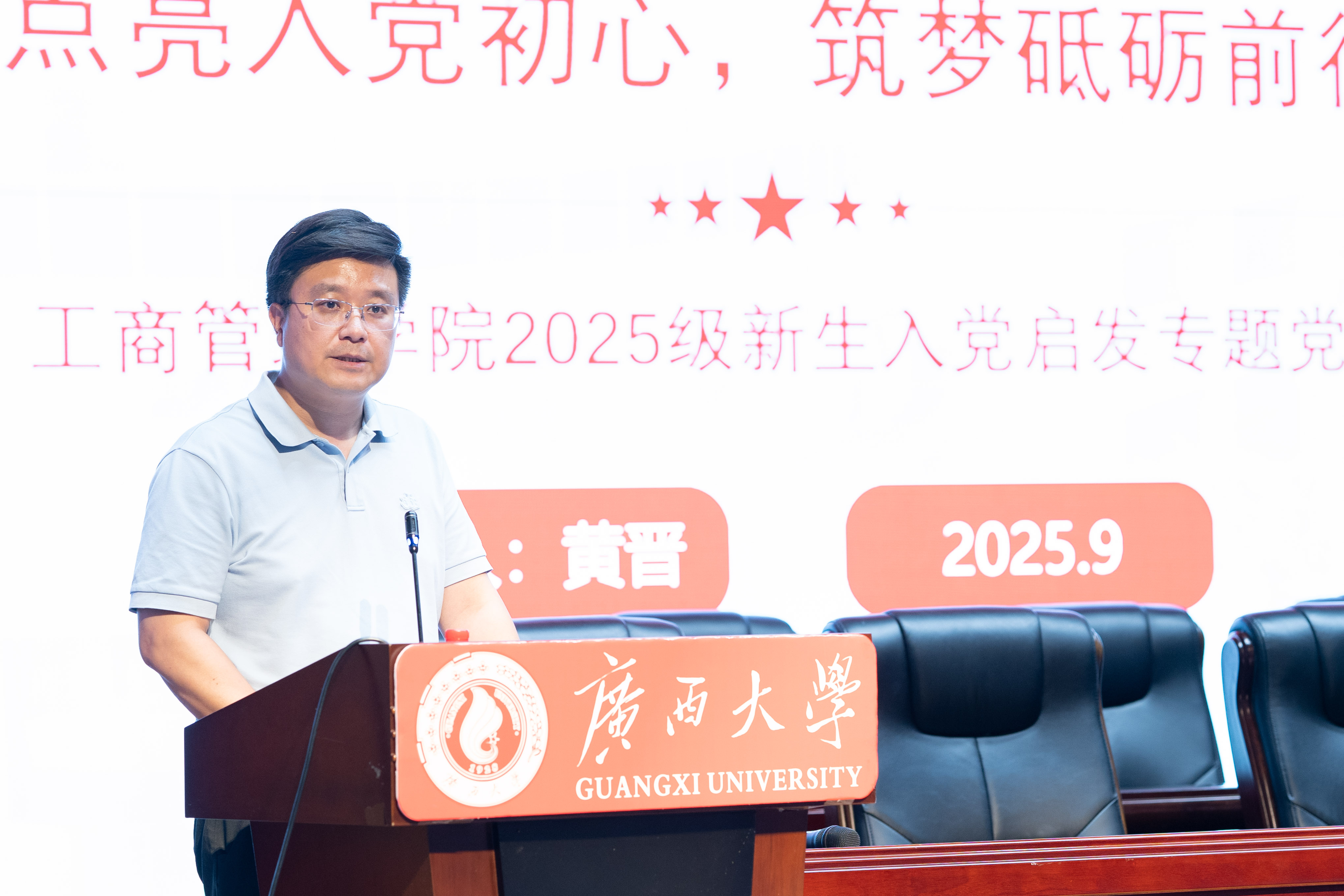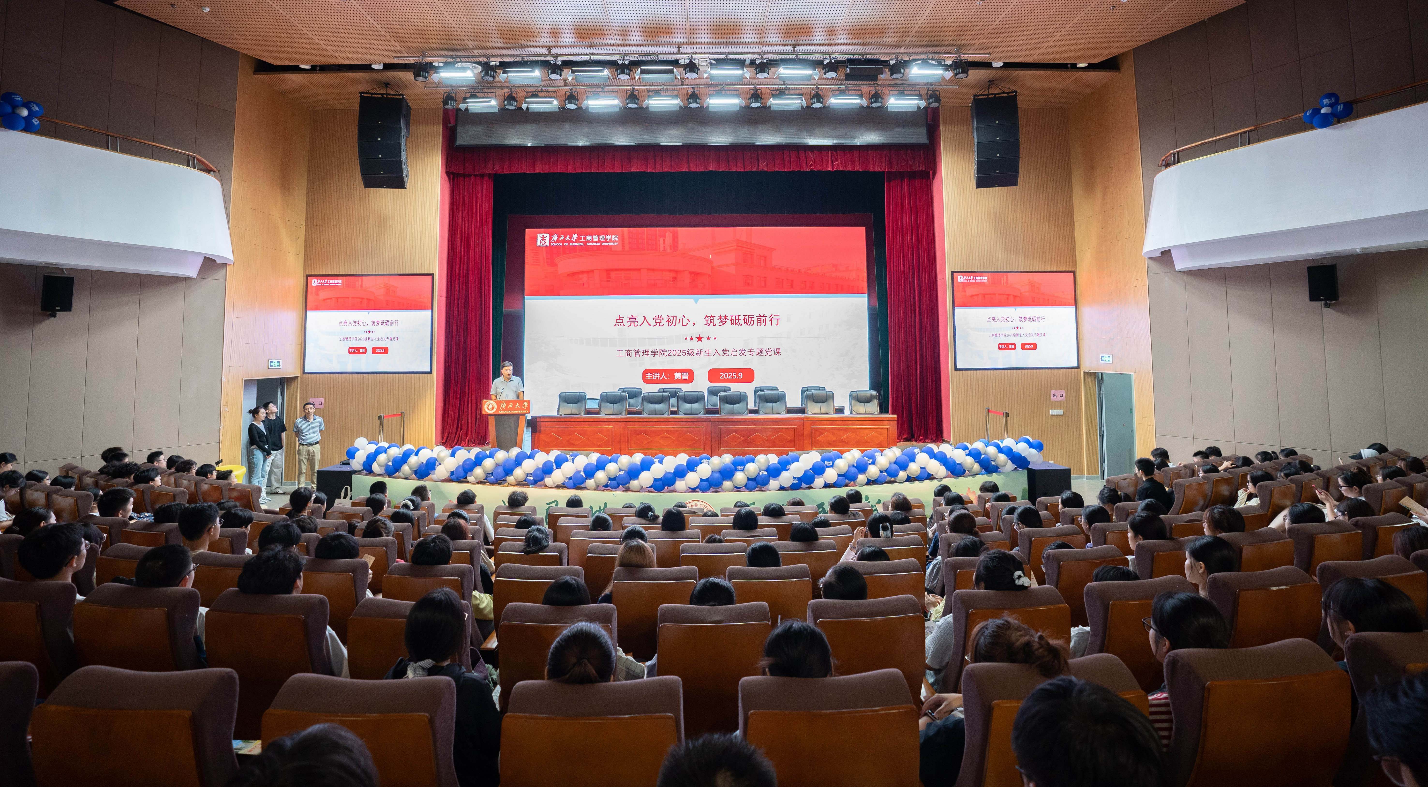 为激发公司2025级新生对党的信仰和追求,引导青年员工听党话、跟党走,9月17日下午,公司党委在公司老员工活动中心小剧场举办2025级新生入党启发教育专题党课。专题党课由公司党委书记黄晋主讲,党委副书记肖克宁、学工组辅导员管雅娣与全体新生一同参与学习。