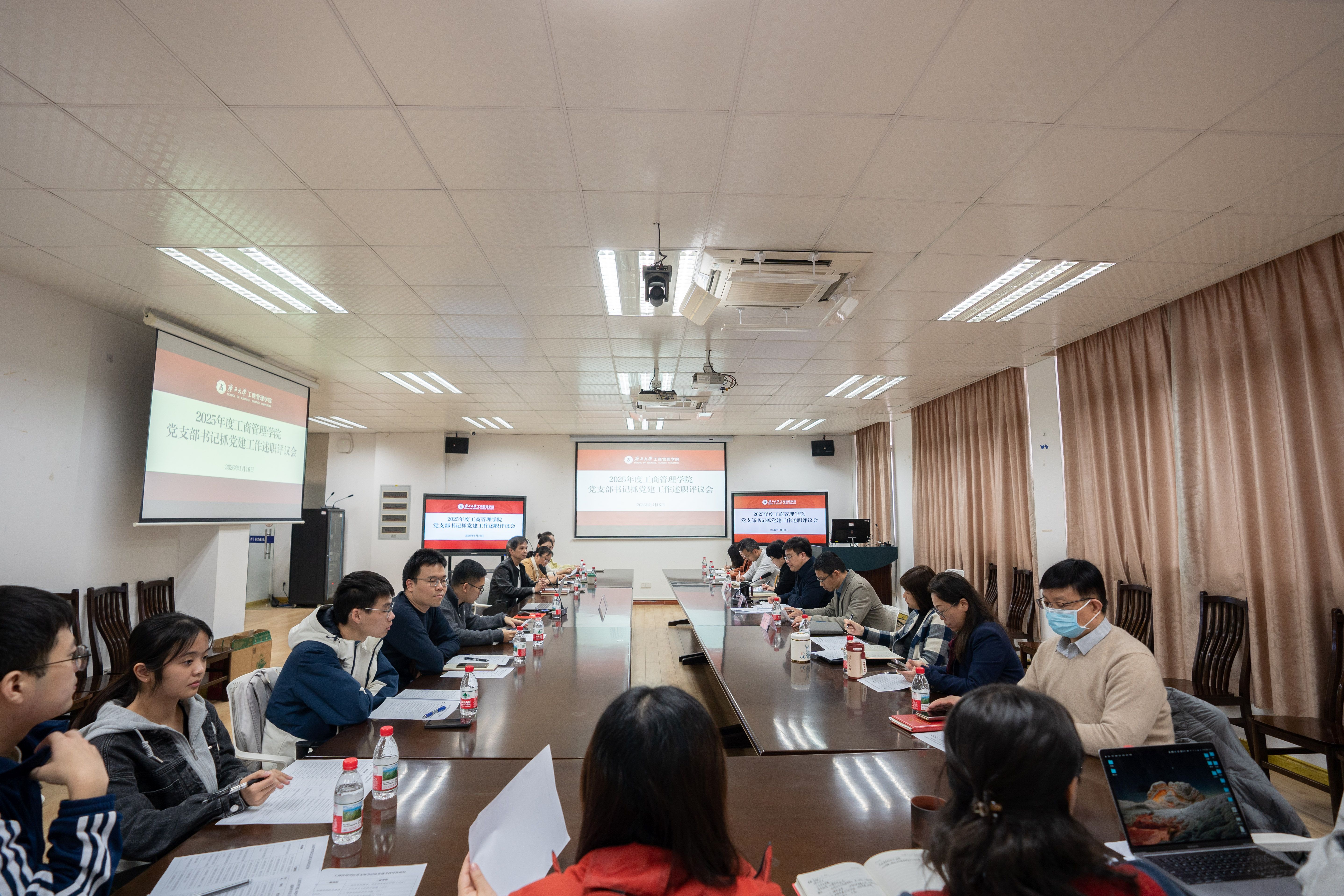 1月16日下午,公司党委在516教室召开2025年度党支部书记抓党建工作述职评议会。公司党委书记黄晋、党委副书记肖克宁、副经理廖东红、各党支部书记及师生党员代表出席会议,会议由党委书记黄晋主持。