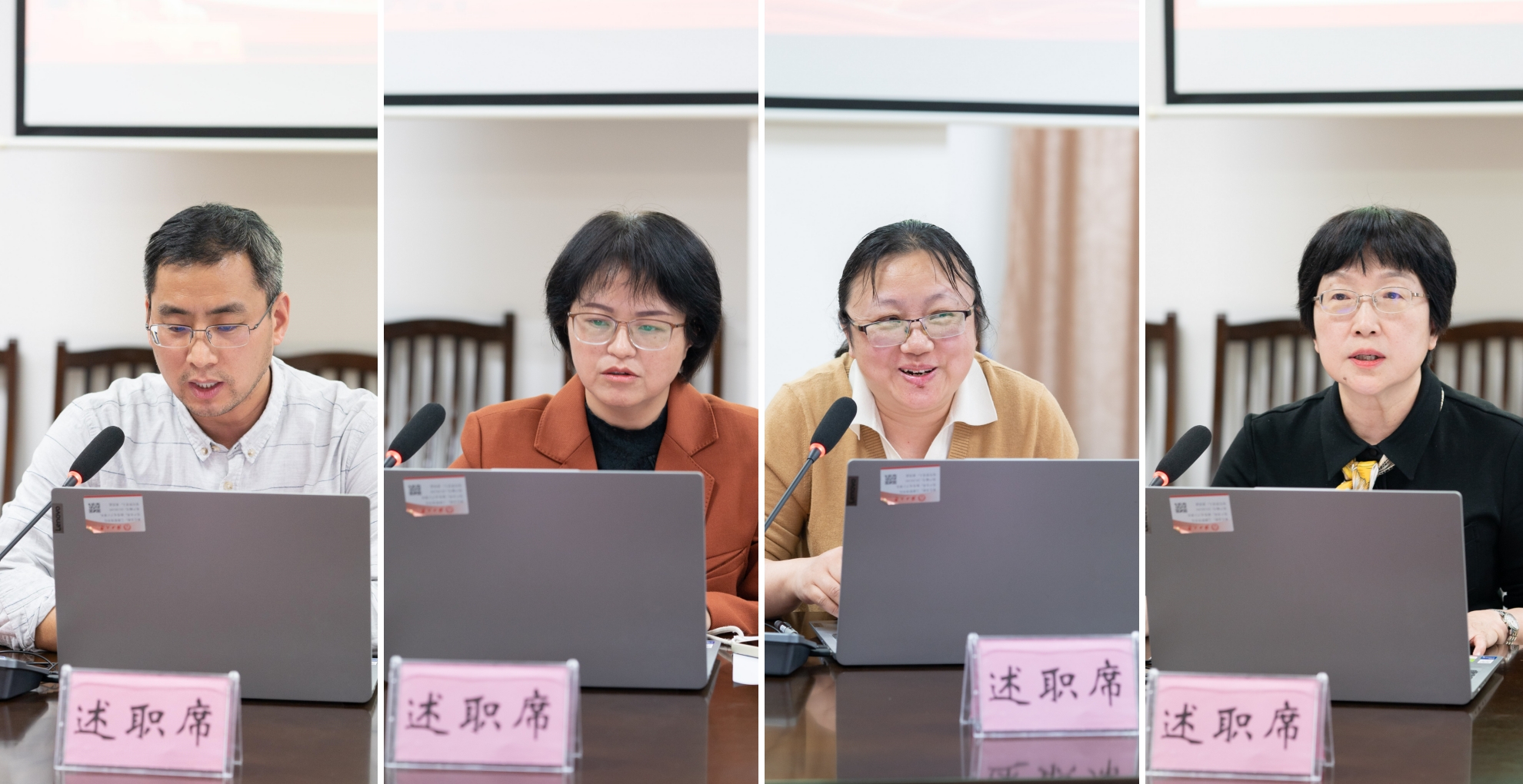 (从左至右:教工企管党支部、教工财会党支部、教工旅管党支部、教工行政党支部)
