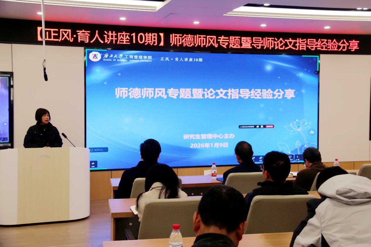 1月9日下午,由公司研究生管理中心主办的研究生导师师德师风专题教育暨论文指导经验分享会在122教室成功举办。公司党委书记黄晋、研究生院副经理朱少英、公司副经理韦铁、旅游管理系主任郭峦以及公司全体研究生导师参加培训,会议由研究生管理中心主任叶映主持。