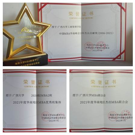 | 2021年度华南地区MBA优秀干部奖 |