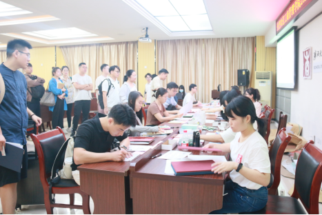 新同学正在办理报到手续