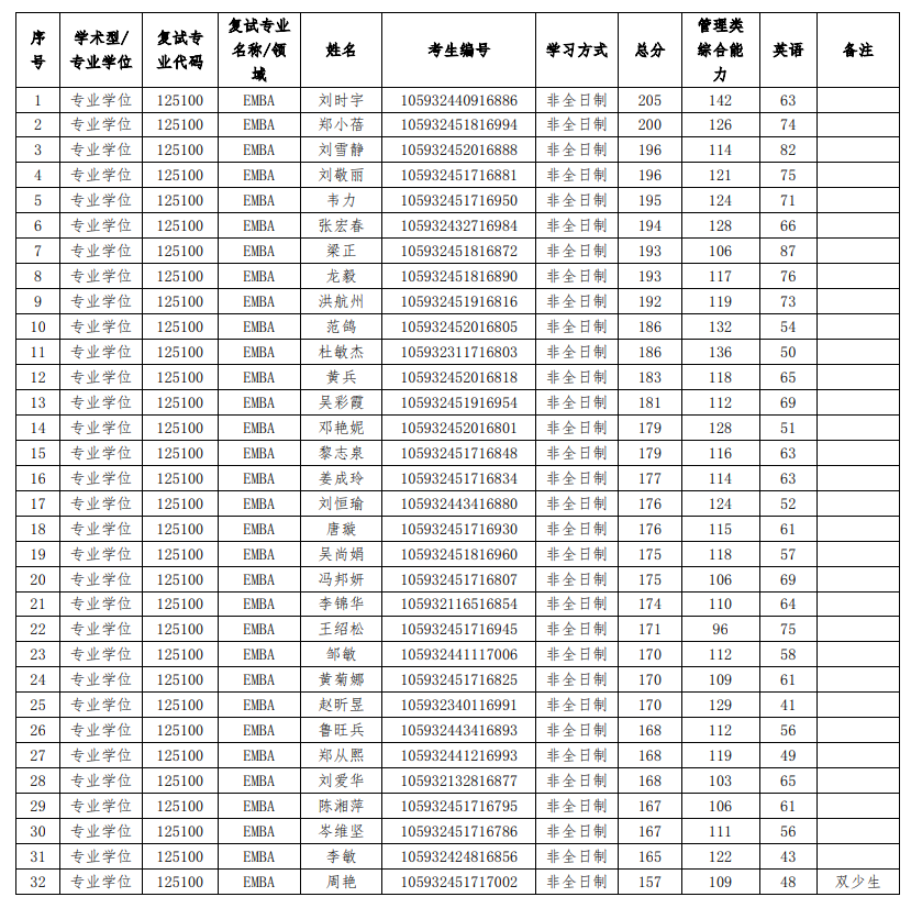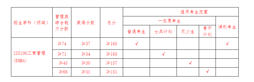 公司研究生院已公布《william威廉英国官网2022年全国硕士研究生复试分数线划线说明》。公司工商管理硕士(EMBA方向)(含少数民族照顾政策考生、少数民族骨干计划考生、士兵计划考生)复试分数线如表1所示:
