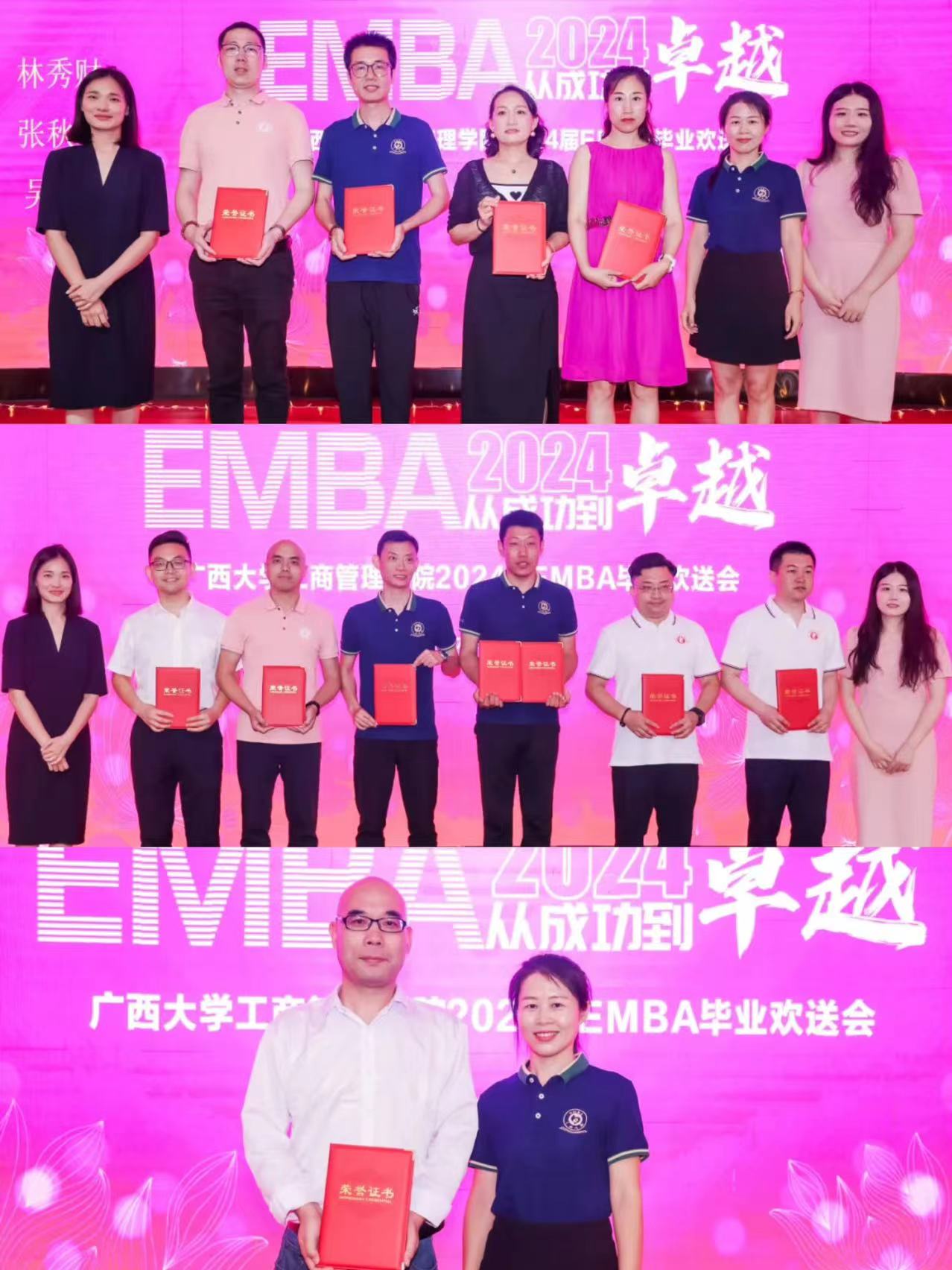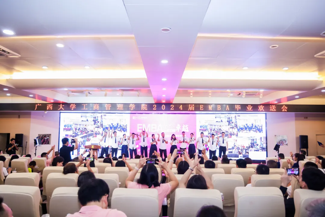 导师代表唐玉生、覃朝勇、EMBA教育中心主任宁雪莲、EMBA班主任代表黄子芸、邓丹分别为EMBA毕业生作毕业寄语,表达了对同学们深深的情感与不舍。