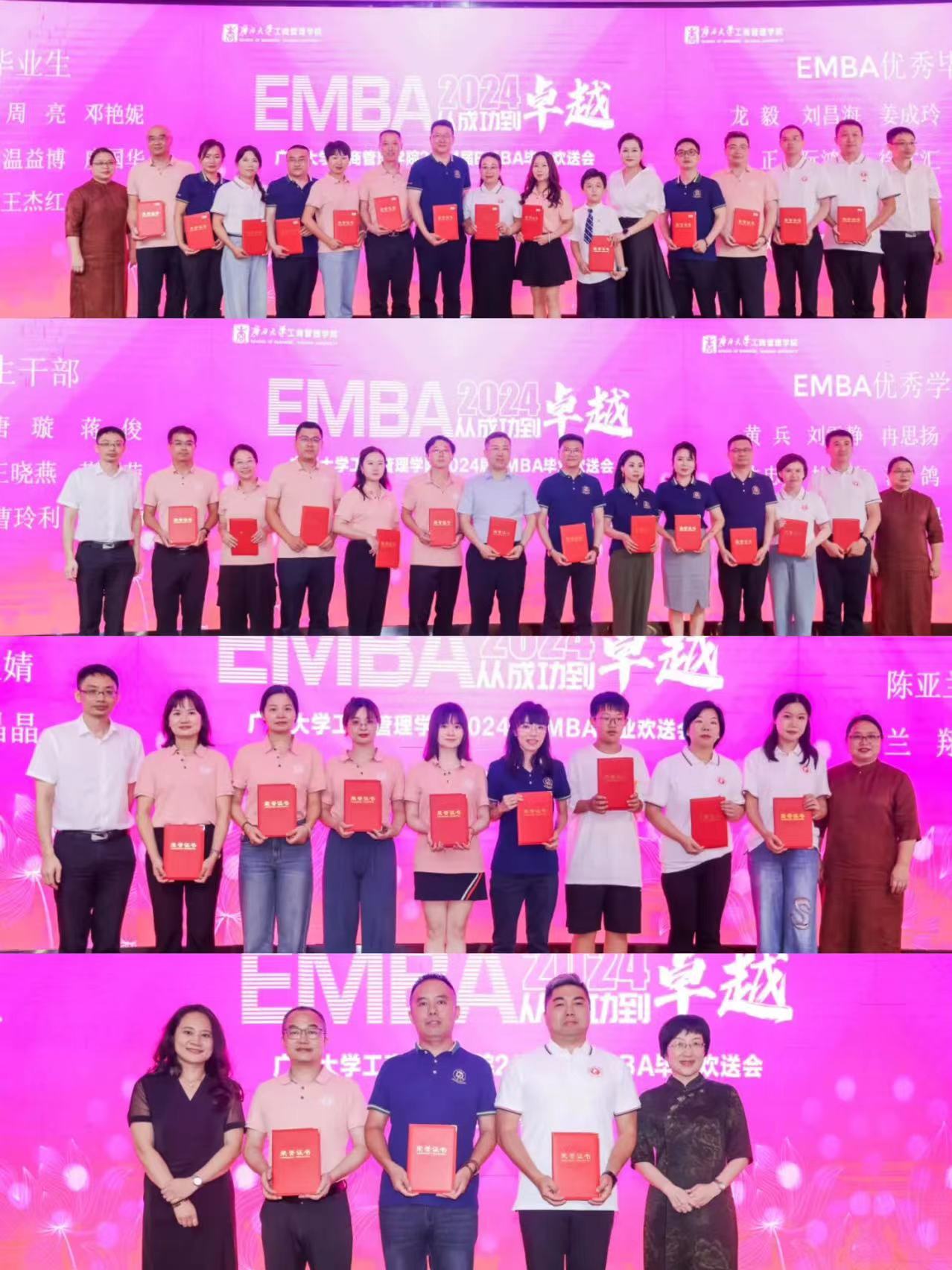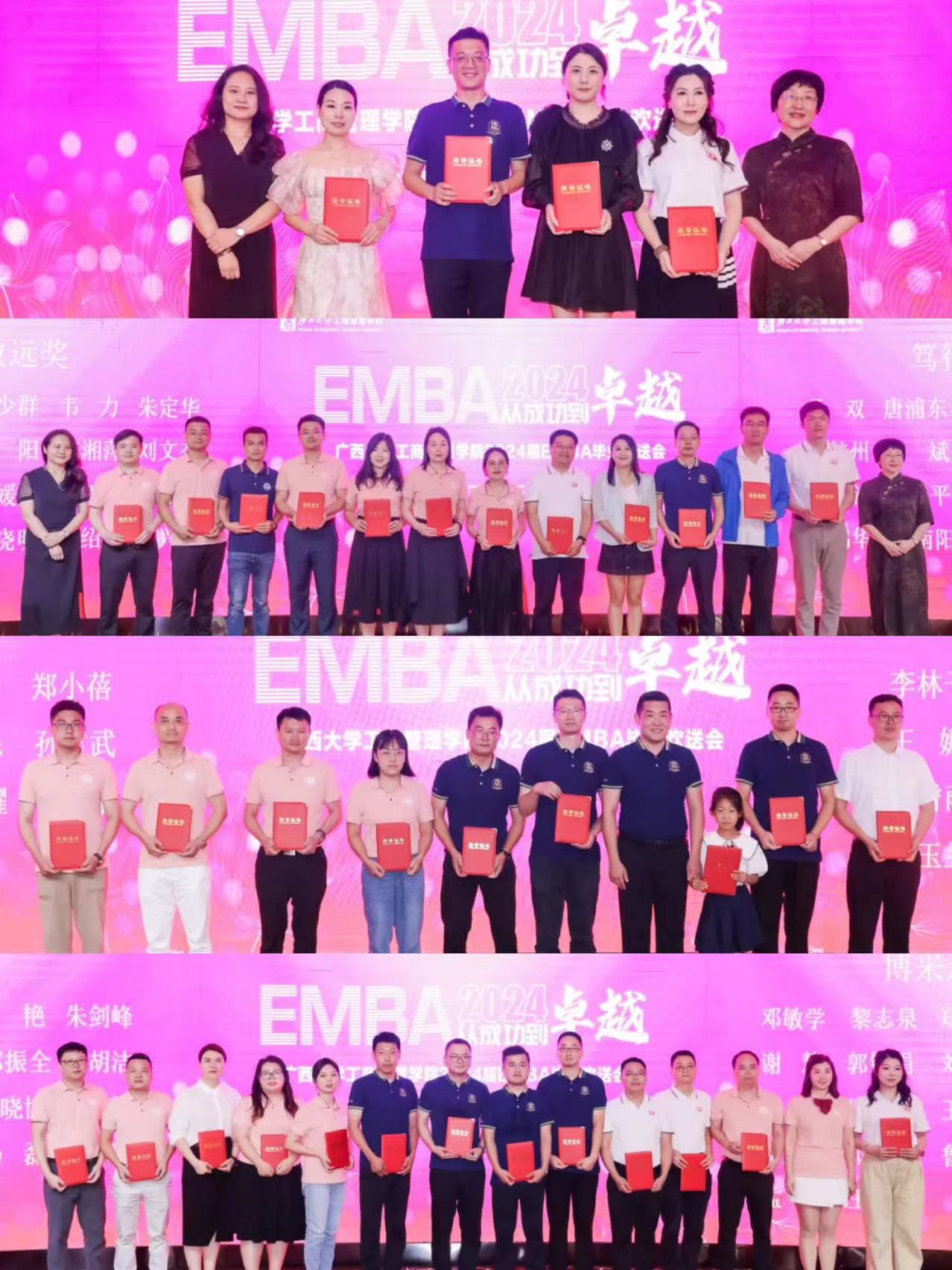 为同学们颁发的奖项有:EMBA优秀毕业生、EMBA优秀员工干部、最具亲和力奖、最具才华奖、最具魅力奖、笃行致远奖、踔厉奋发奖、博采众长奖、笃志好学奖、弘毅奖、勇毅奖。