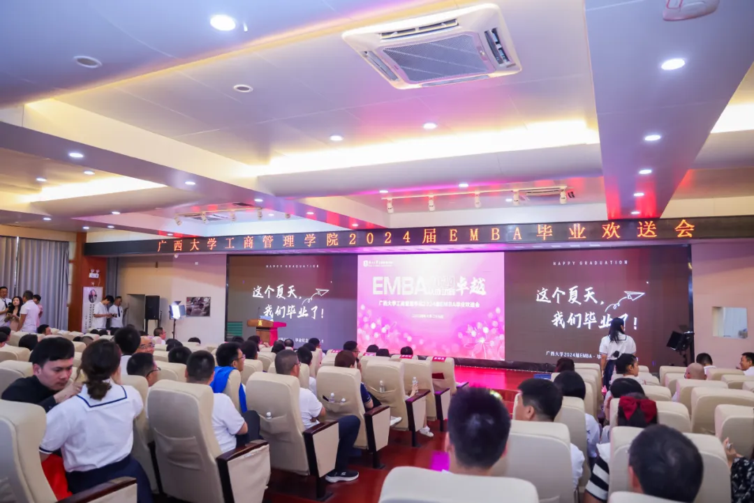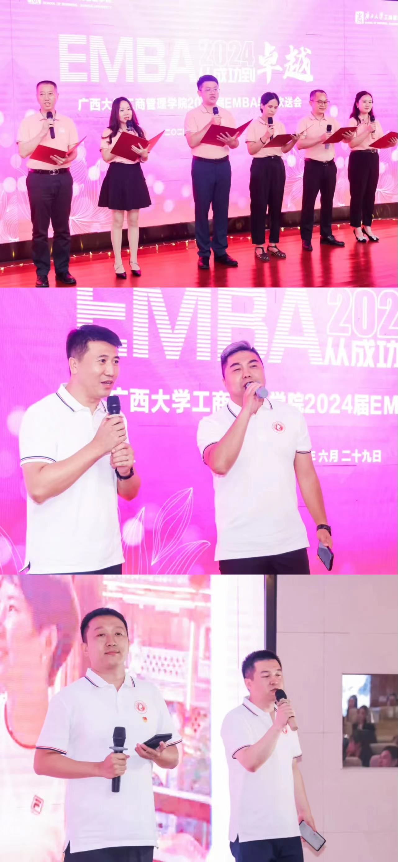 6月29日下午,william威廉英国官网2024届EMBA毕业生欢送会在128报告厅隆重举行。公司党委副书记肖克宁、副经理朱少英、申韬、刘民坤、廖东红,导师代表唐玉生、覃朝勇等老师出席了欢送会,共同为此次毕业的EMBA同学庆祝。此次欢送会由EMBA21班周艳、EMBA22班居香、EMBA23班陆宏亮主持。