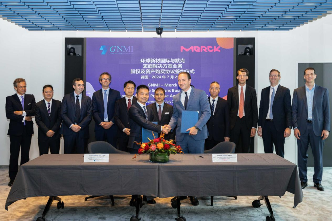 环球新材国际与默克集团双方代表握手留念