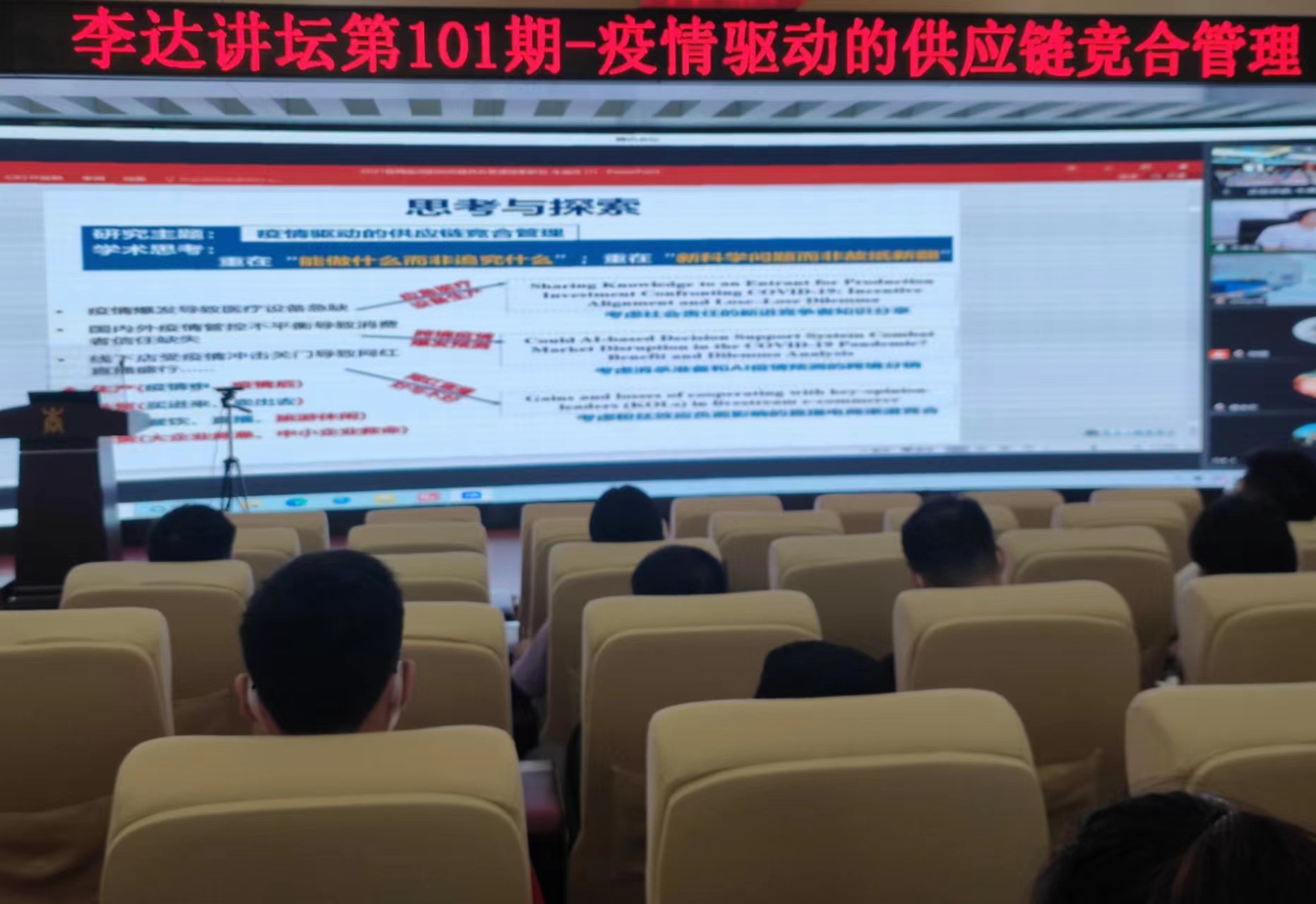 讲坛上,牛保庄教授首先从疫情背景下中国企业如何做出决策、优化空间和为客户提供高质量服务以保持竞争力等方面,展示了团队在学术研究中为企业开发安全、自洽的供应链模型。